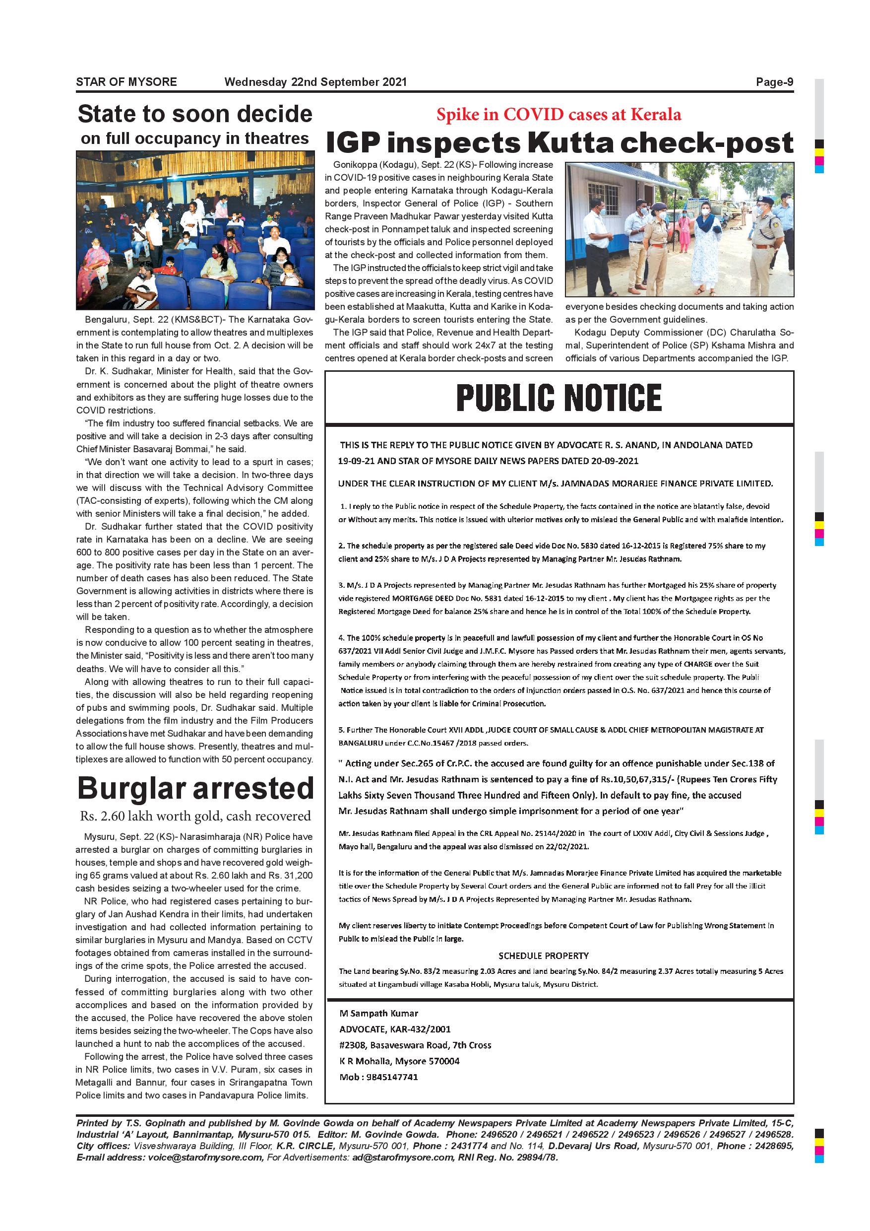 Star of Mysore Page: 9 September 22, 2021 << First << 9 >> Last >> Page 1Page 2Page 3Page 4Page 5Page 6Page 7Page 8Page 9Page 10Page 11Page 12 × Star of Mysore << First << 9 >> Last >> page-001page-002page-003page-004page-005page-006page-007page-008page-009page-010page-011page-012 page-009