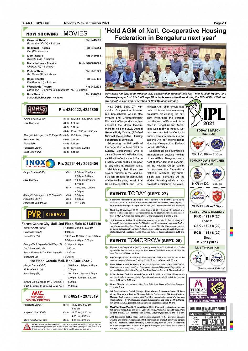 Star of Mysore Page: 11 September 27, 2021 << First << 11 >> Last >> Page 1Page 2Page 3Page 4Page 5Page 6Page 7Page 8Page 9Page 10Page 11Page 12 × Star of Mysore << First << 11 >> Last >> Page-001Page-002Page-003Page-004Page-005Page-006Page-007Page-008Page-009Page-010Page-011Page-012 Page-011