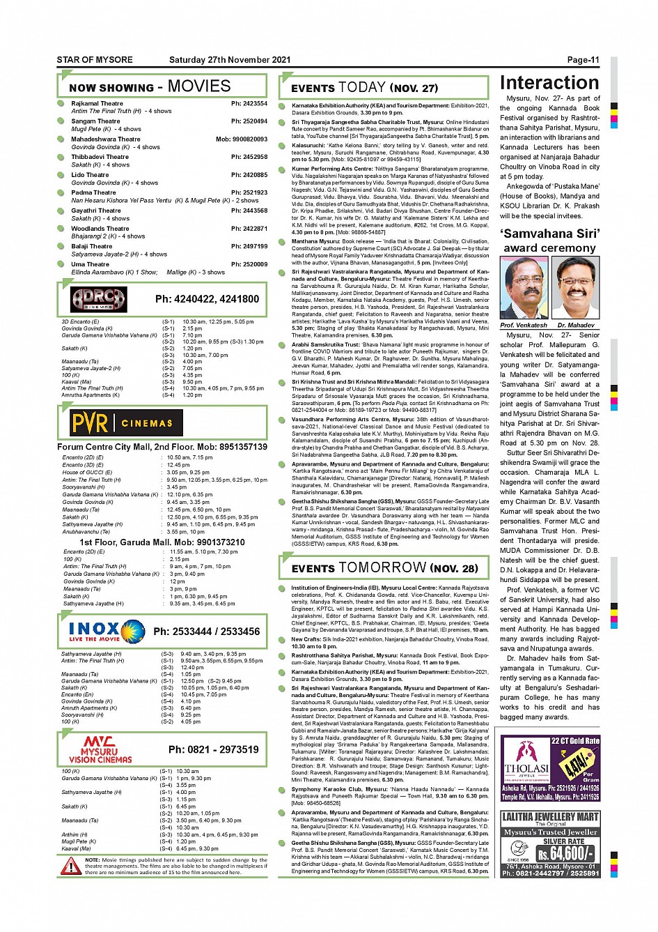 Star of Mysore Page: 11 November 27, 2021 << First << 11 >> Last >> Page 1Page 2Page 3Page 4Page 5Page 6Page 7Page 8Page 9Page 10Page 11Page 12 × Star of Mysore << First << 11 >> Last >> page-001page-002page-003page-004page-005page-006page-007page-008page-009page-010page-011page-012 page-011