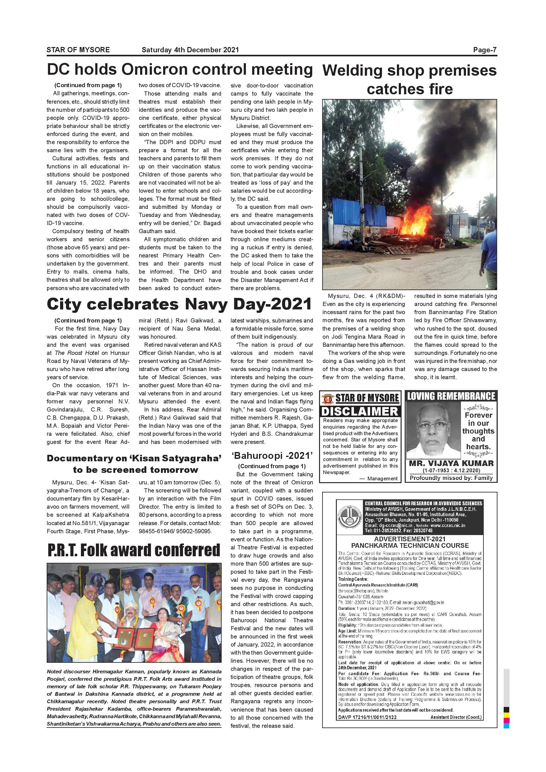 Star of Mysore Page: 7 December 04, 2021 << First << 7 >> Last >> Page 1Page 2Page 3Page 4Page 5Page 6Page 7Page 8Page 9Page 10Page 11Page 12 × Star of Mysore << First << 7 >> Last >> Page-001Page-002Page-003Page-004Page-005Page-006Page-007Page-008Page-009Page-010Page-011Page-012 Page-007