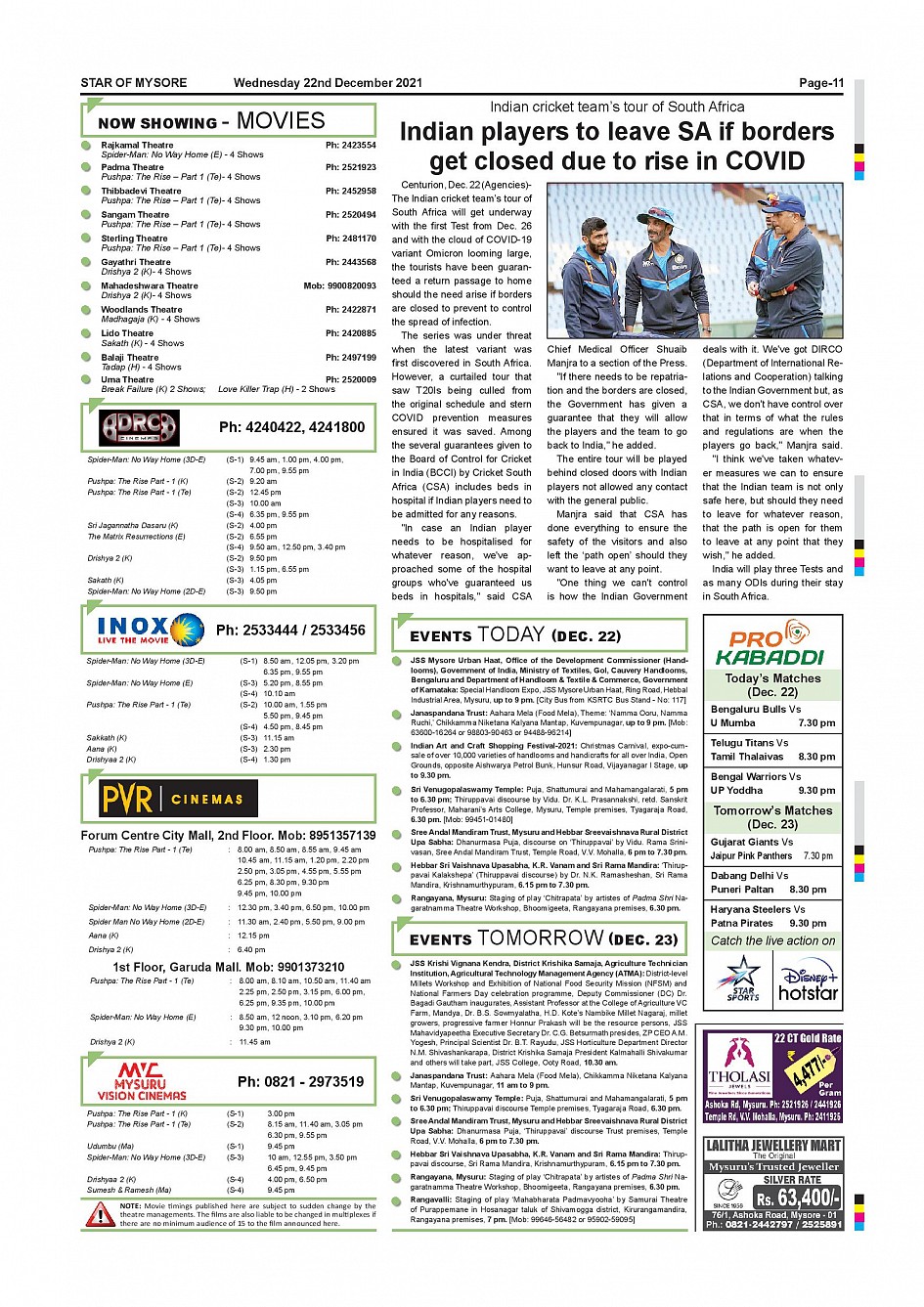 Star of Mysore Page: 11 December 22, 2021 << First << 11 >> Last >> Page 1Page 2Page 3Page 4Page 5Page 6Page 7Page 8Page 9Page 10Page 11Page 12 × Star of Mysore << First << 11 >> Last >> page-001page-002page-003page-004page-005page-006page-007page-008page-009page-010page-011page-012 page-011