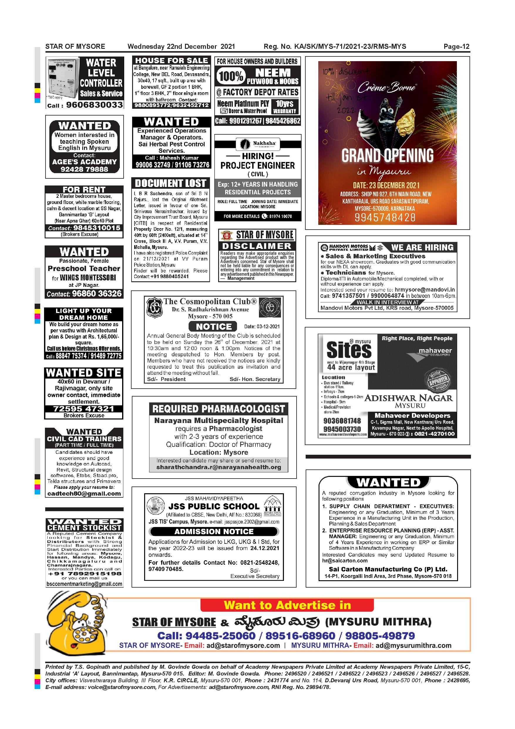 Star of Mysore Page: 12 December 22, 2021 << First << 12 >> Last >> Page 1Page 2Page 3Page 4Page 5Page 6Page 7Page 8Page 9Page 10Page 11Page 12 × Star of Mysore << First << 12 >> Last >> page-001page-002page-003page-004page-005page-006page-007page-008page-009page-010page-011page-012 page-012