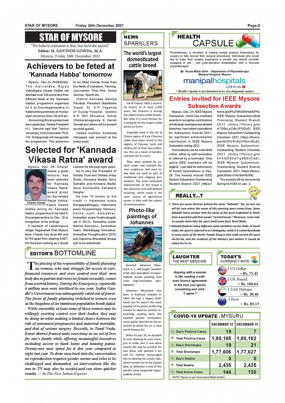 Star of Mysore Page: 2 December 24, 2021 << First << 2 >> Last >> Page 1Page 2Page 3Page 4Page 5Page 6Page 7Page 8Page 9Page 10Page 11Page 12 × Star of Mysore << First << 2 >> Last >> SOM-page-001SOM-page-002SOM-page-003SOM-page-004SOM-page-005SOM-page-006SOM-page-007SOM-page-008SOM-page-009SOM-page-010SOM-page-011SOM-page-012 SOM-page-002