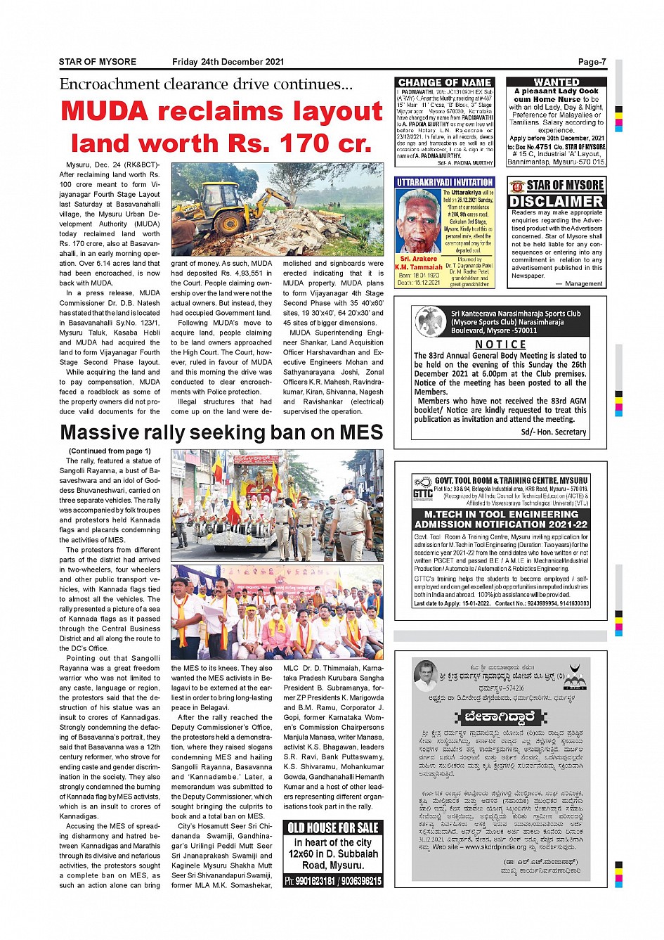 Star of Mysore Page: 7 December 24, 2021 << First << 7 >> Last >> Page 1Page 2Page 3Page 4Page 5Page 6Page 7Page 8Page 9Page 10Page 11Page 12 × Star of Mysore << First << 7 >> Last >> SOM-page-001SOM-page-002SOM-page-003SOM-page-004SOM-page-005SOM-page-006SOM-page-007SOM-page-008SOM-page-009SOM-page-010SOM-page-011SOM-page-012 SOM-page-007