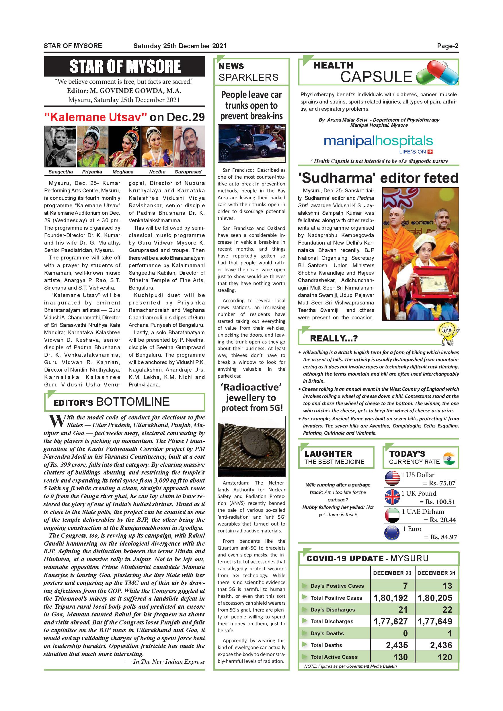 Star of Mysore Page: 2 December 25, 2021 << First << 2 >> Last >> Page 1Page 2Page 3Page 4Page 5Page 6Page 7Page 8Page 9Page 10Page 11Page 12 × Star of Mysore << First << 2 >> Last >> SOM-page-001SOM-page-002SOM-page-003SOM-page-004SOM-page-005SOM-page-006SOM-page-007SOM-page-008SOM-page-009SOM-page-010SOM-page-011SOM-page-012 SOM-page-002