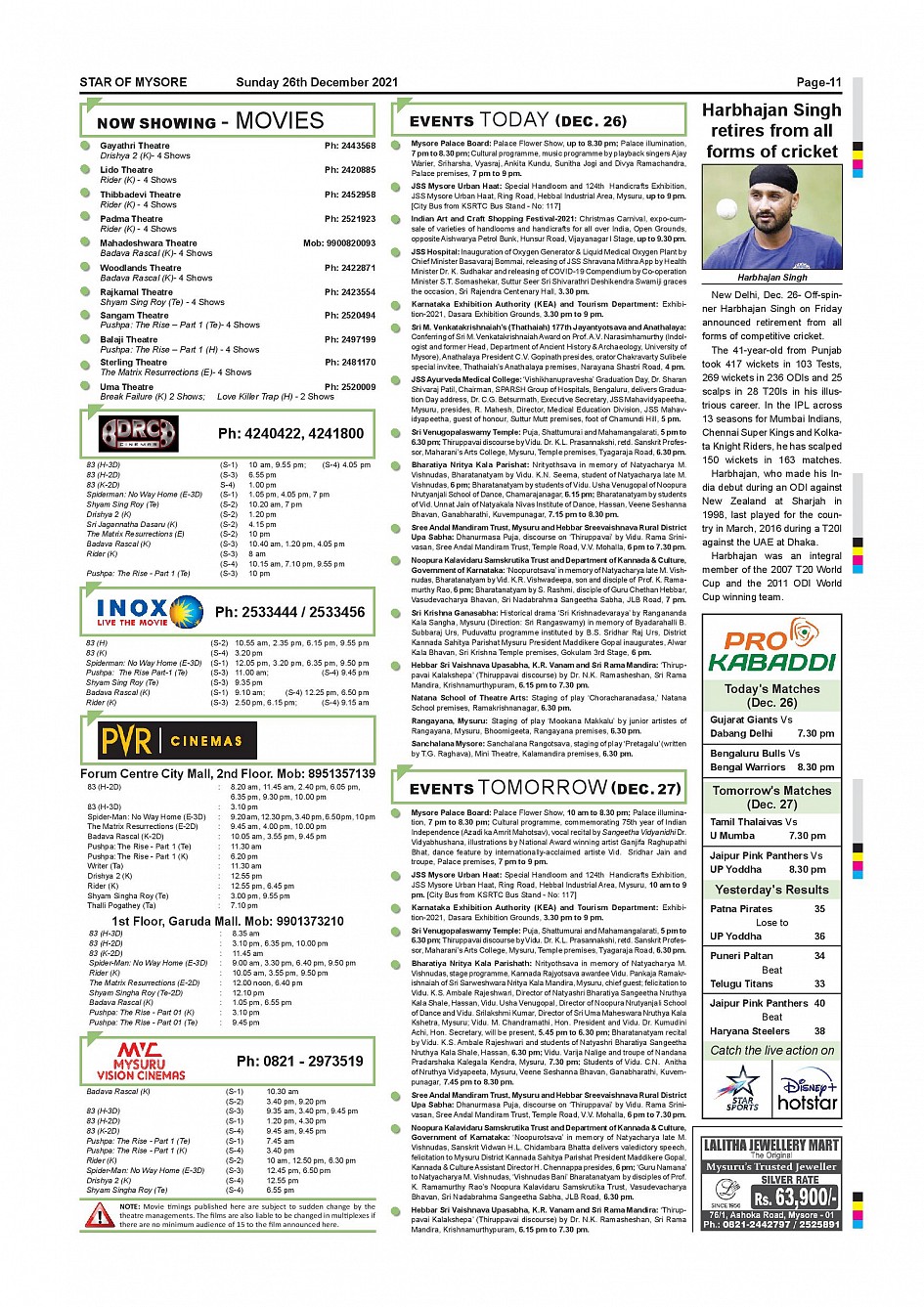 Star of Mysore Page: 11 December 26, 2021 << First << 11 >> Last >> Page 1Page 2Page 3Page 4Page 5Page 6Page 7Page 8Page 9Page 10Page 11Page 12 × Star of Mysore << First << 11 >> Last >> SOM-page-001SOM-page-002SOM-page-003SOM-page-004SOM-page-005SOM-page-006SOM-page-007SOM-page-008SOM-page-009SOM-page-010SOM-page-011SOM-page-012 SOM-page-011