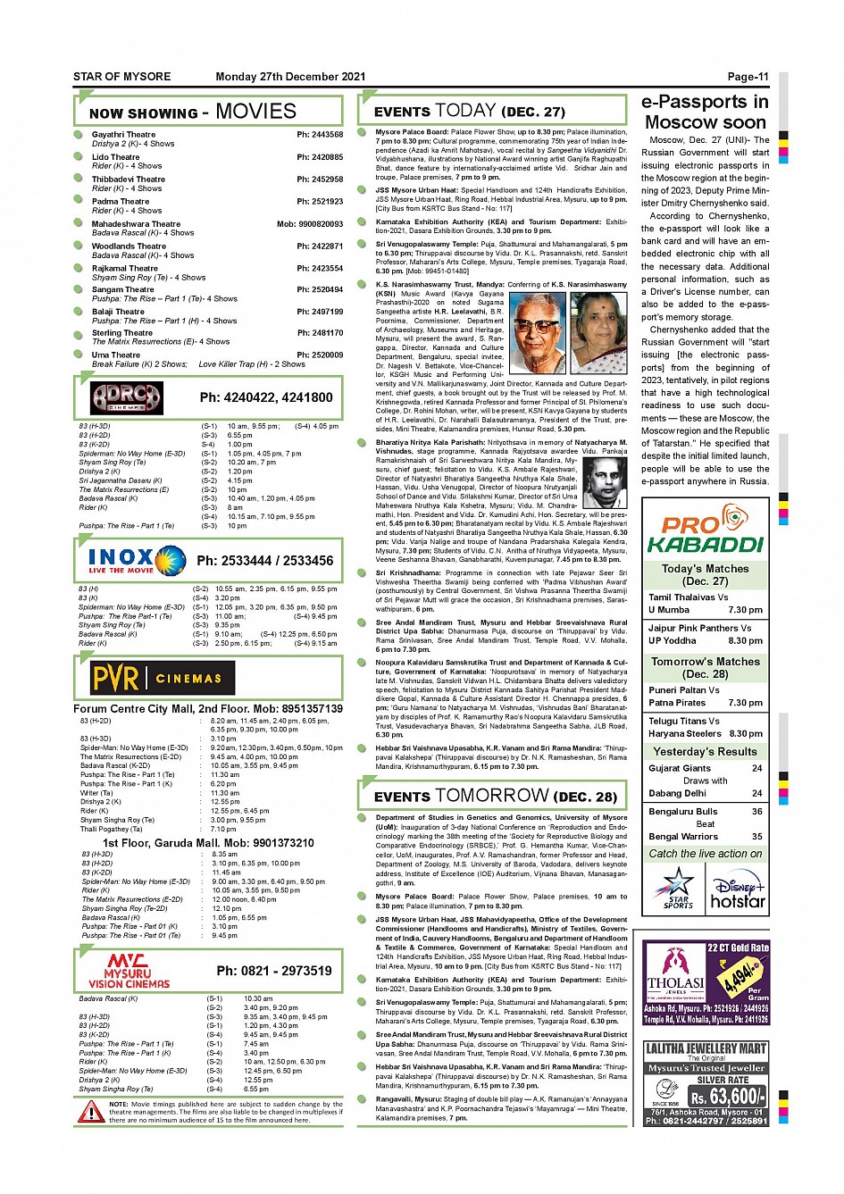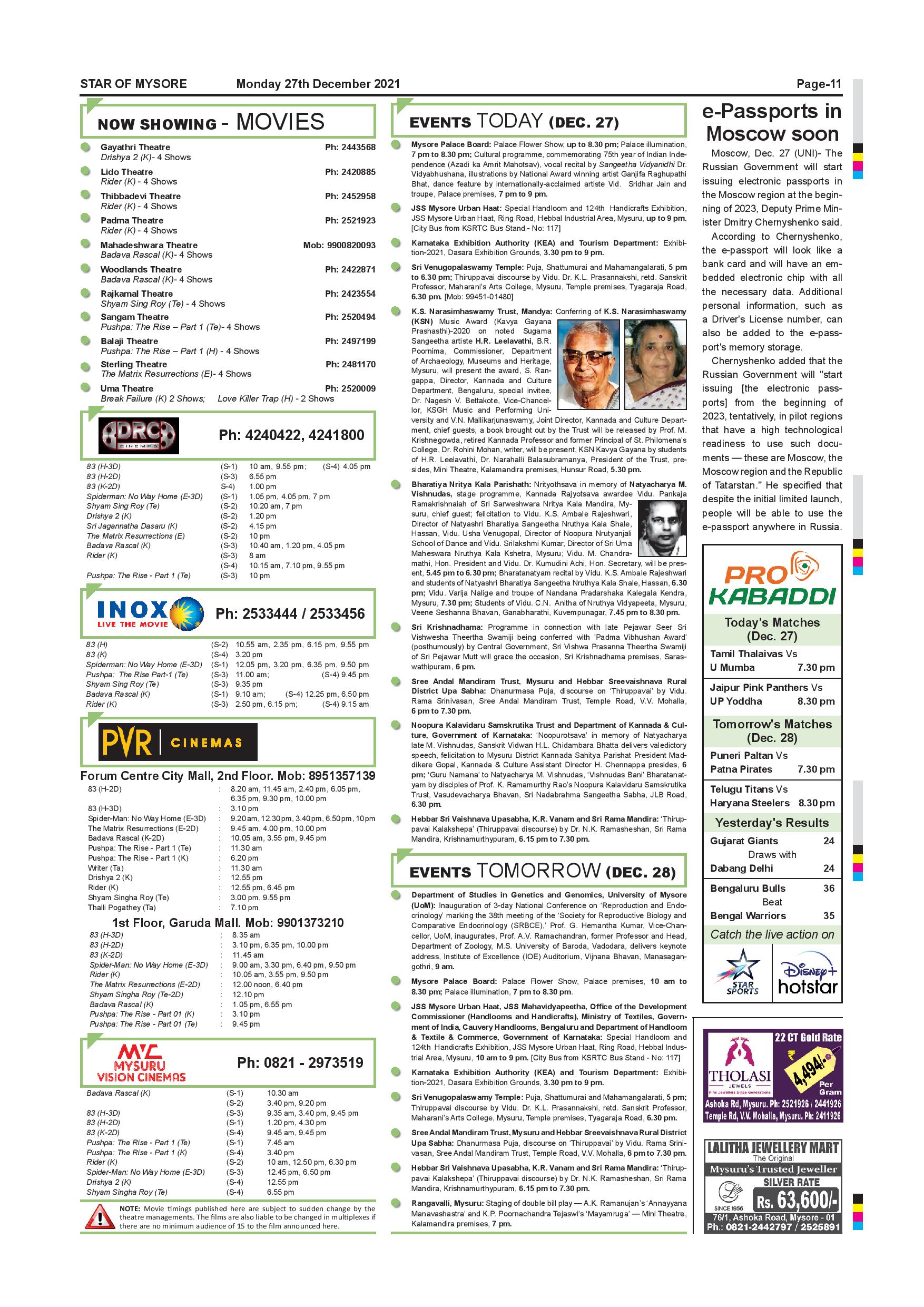 Star of Mysore Page: 11 December 27, 2021 << First << 11 >> Last >> Page 1Page 2Page 3Page 4Page 5Page 6Page 7Page 8Page 9Page 10Page 11Page 12 × Star of Mysore << First << 11 >> Last >> SOM-page-001SOM-page-002SOM-page-003SOM-page-004SOM-page-005SOM-page-006SOM-page-007SOM-page-008SOM-page-009SOM-page-010SOM-page-011SOM-page-012 SOM-page-011