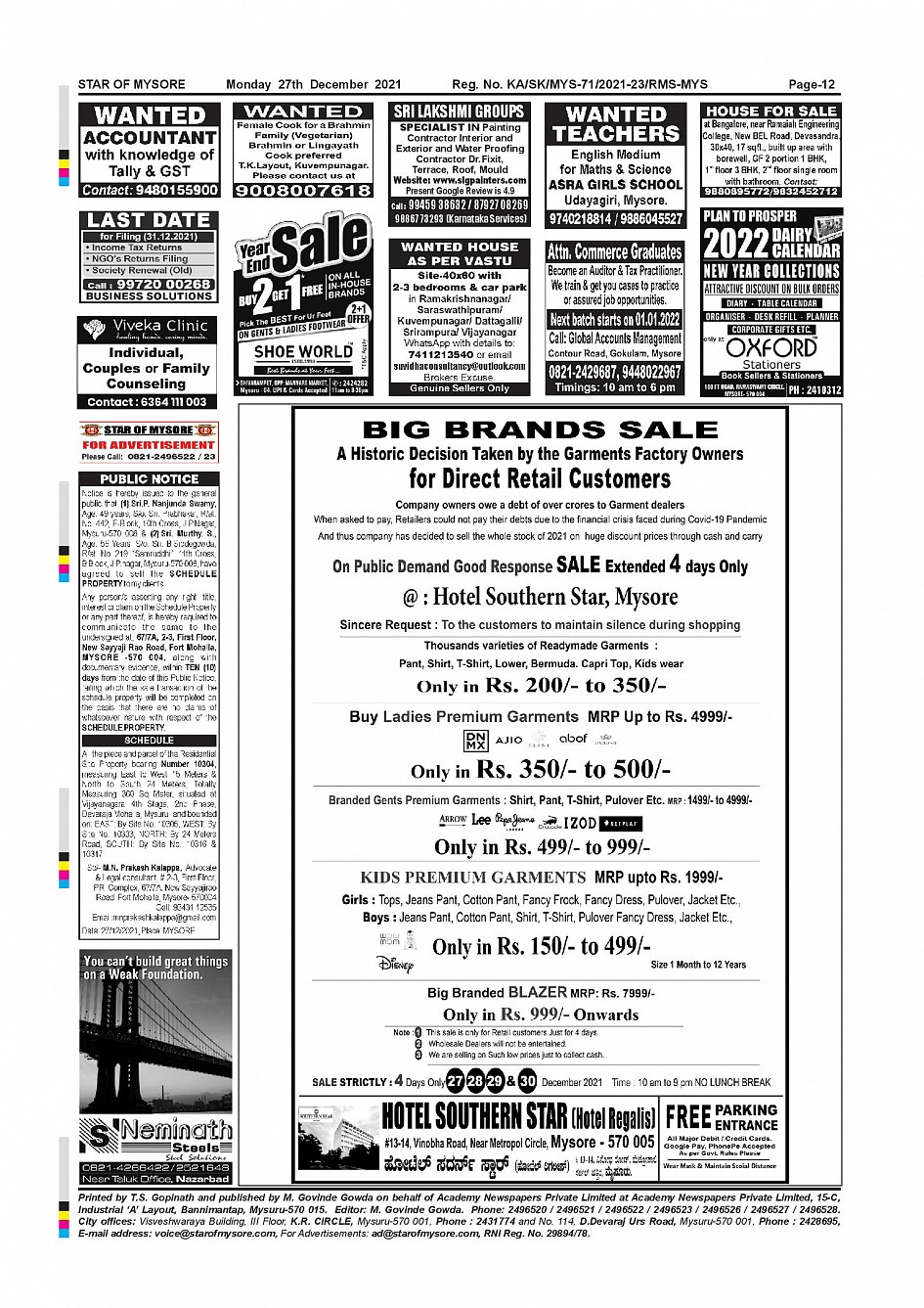 Star of Mysore Page: 12 December 27, 2021 << First << 12 >> Last >> Page 1Page 2Page 3Page 4Page 5Page 6Page 7Page 8Page 9Page 10Page 11Page 12 × Star of Mysore << First << 12 >> Last >> SOM-page-001SOM-page-002SOM-page-003SOM-page-004SOM-page-005SOM-page-006SOM-page-007SOM-page-008SOM-page-009SOM-page-010SOM-page-011SOM-page-012 SOM-page-012