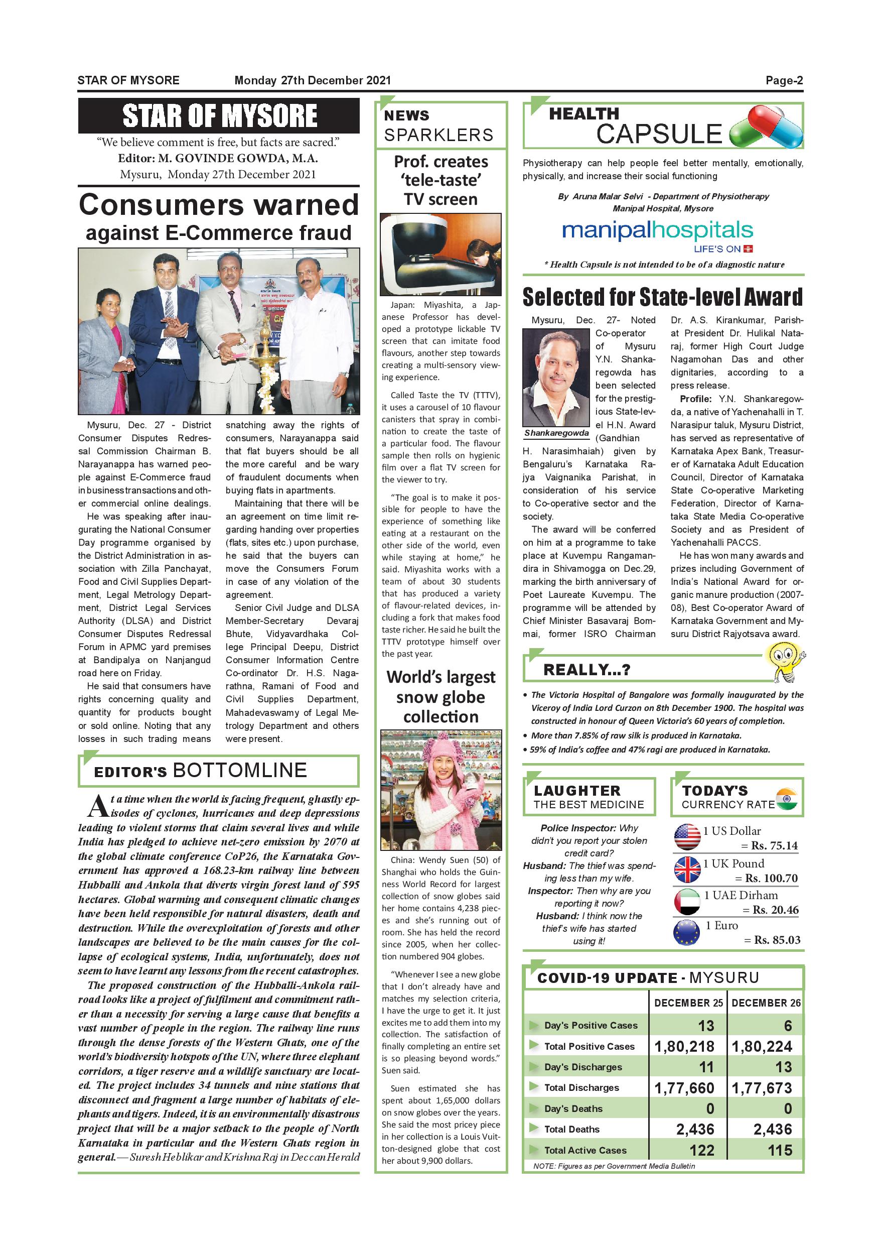 Star of Mysore Page: 2 December 27, 2021 << First << 2 >> Last >> Page 1Page 2Page 3Page 4Page 5Page 6Page 7Page 8Page 9Page 10Page 11Page 12 × Star of Mysore << First << 2 >> Last >> SOM-page-001SOM-page-002SOM-page-003SOM-page-004SOM-page-005SOM-page-006SOM-page-007SOM-page-008SOM-page-009SOM-page-010SOM-page-011SOM-page-012 SOM-page-002