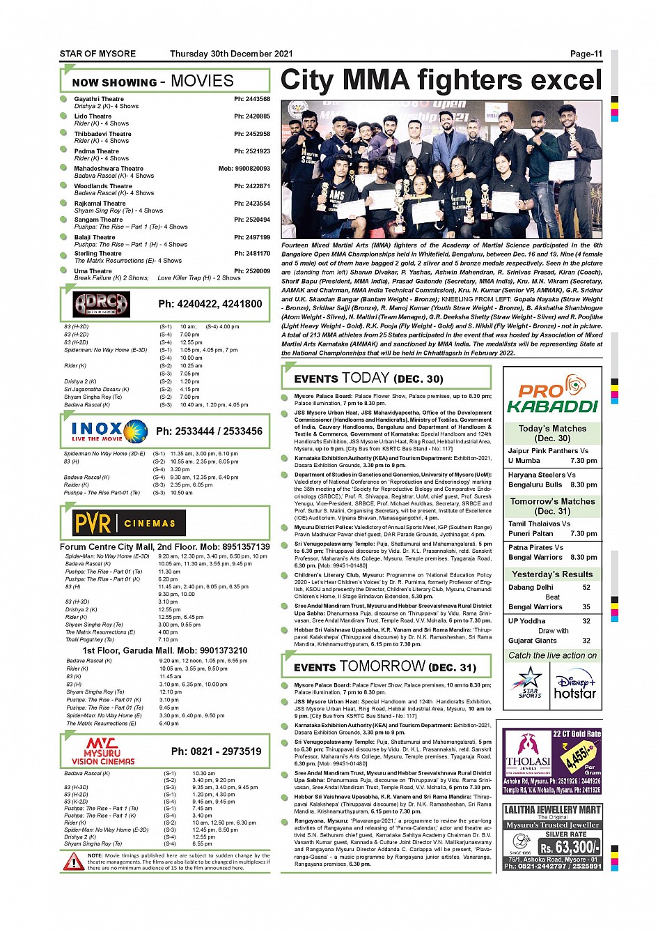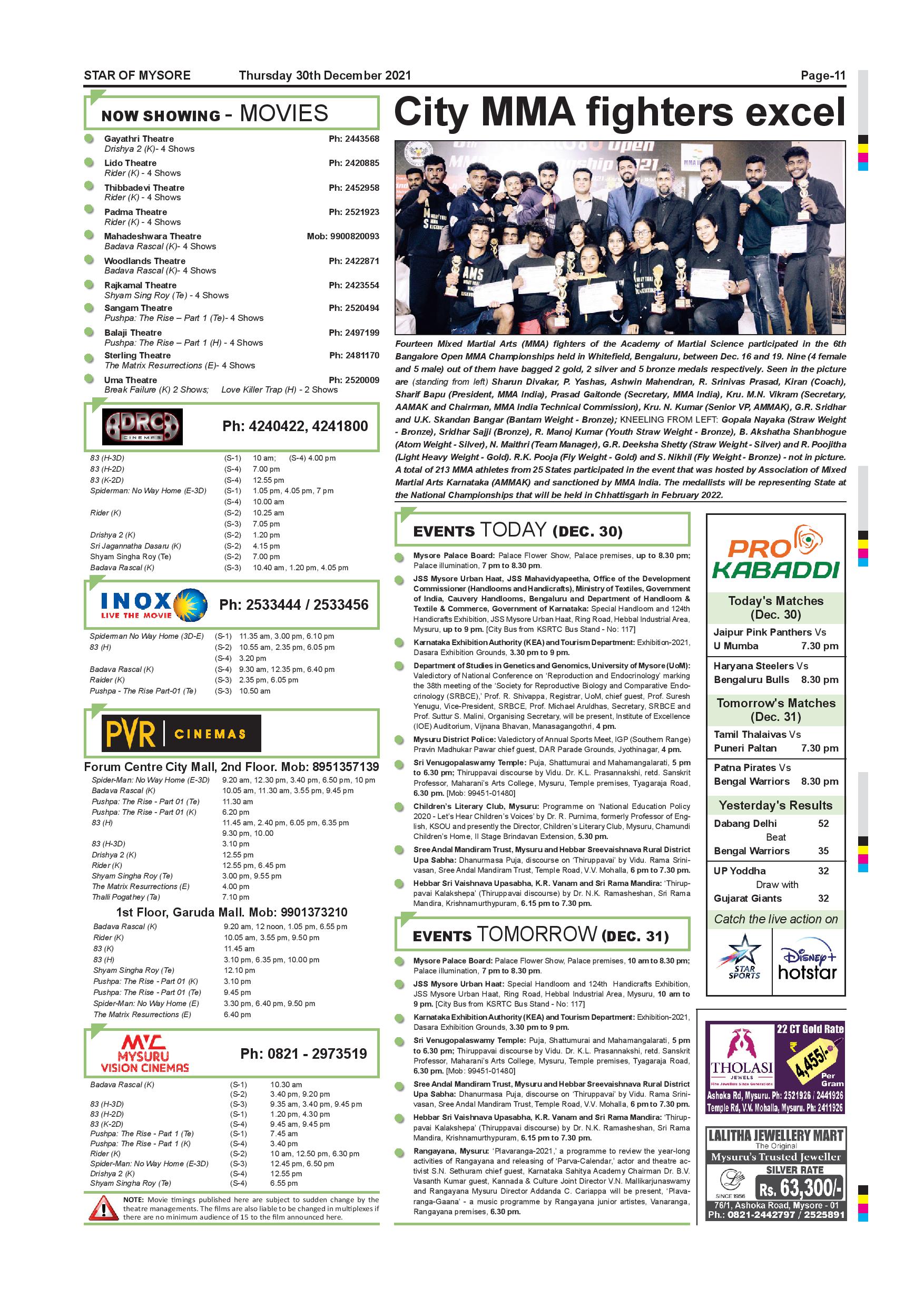 Star of Mysore Page: 11 December 30, 2021 << First << 11 >> Last >> Page 1Page 2Page 3Page 4Page 5Page 6Page 7Page 8Page 9Page 10Page 11Page 12 × Star of Mysore << First << 11 >> Last >> SOM-page-001SOM-page-002SOM-page-003SOM-page-004SOM-page-005SOM-page-006SOM-page-007SOM-page-008SOM-page-009SOM-page-010SOM-page-011SOM-page-012 SOM-page-011