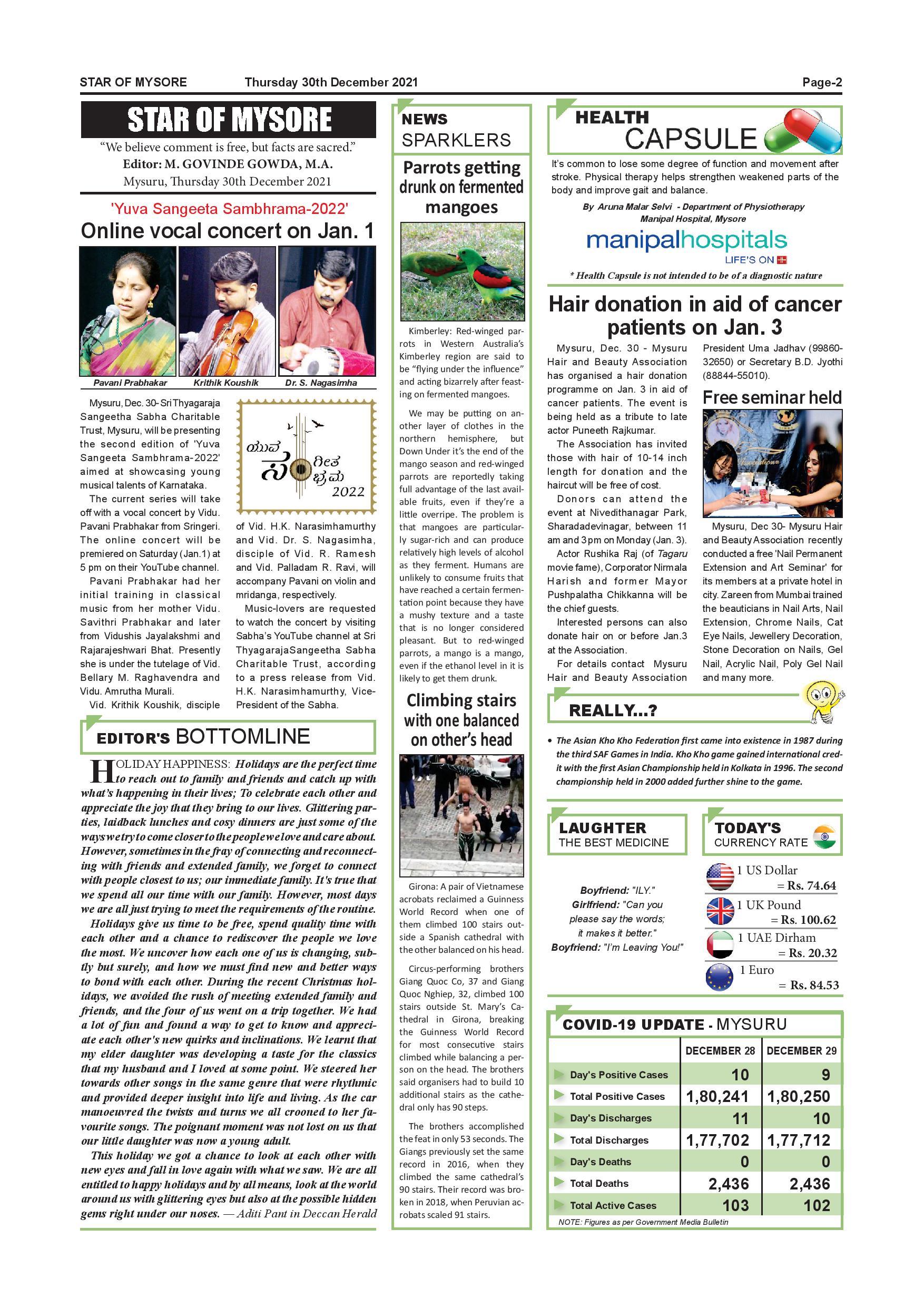 Star of Mysore Page: 2 December 30, 2021 << First << 2 >> Last >> Page 1Page 2Page 3Page 4Page 5Page 6Page 7Page 8Page 9Page 10Page 11Page 12 × Star of Mysore << First << 2 >> Last >> SOM-page-001SOM-page-002SOM-page-003SOM-page-004SOM-page-005SOM-page-006SOM-page-007SOM-page-008SOM-page-009SOM-page-010SOM-page-011SOM-page-012 SOM-page-002
