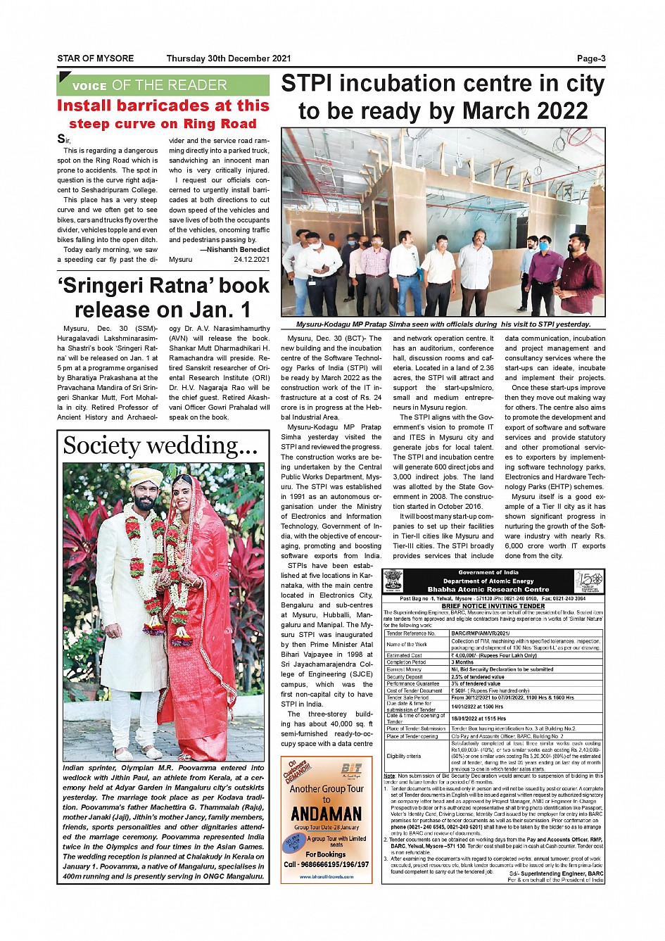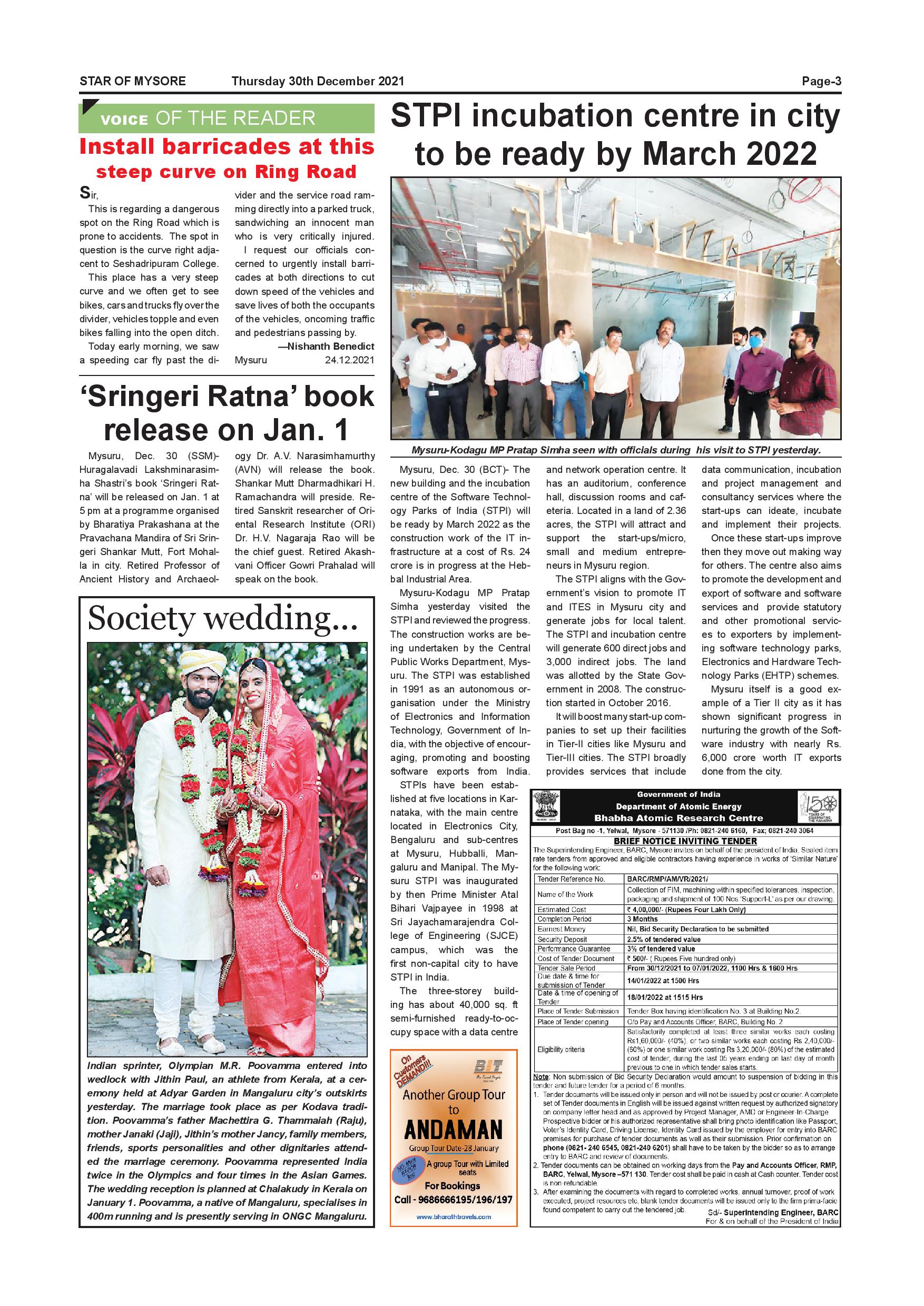 Star of Mysore Page: 3 December 30, 2021 << First << 3 >> Last >> Page 1Page 2Page 3Page 4Page 5Page 6Page 7Page 8Page 9Page 10Page 11Page 12 × Star of Mysore << First << 3 >> Last >> SOM-page-001SOM-page-002SOM-page-003SOM-page-004SOM-page-005SOM-page-006SOM-page-007SOM-page-008SOM-page-009SOM-page-010SOM-page-011SOM-page-012 SOM-page-003