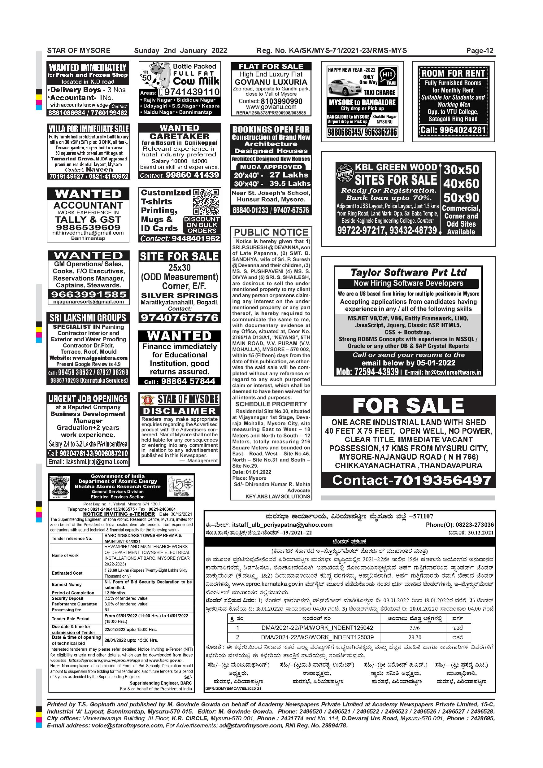 Star of Mysore Page: 12 January 02, 2022 << First << 12 >> Last >> Page 1Page 2Page 3Page 4Page 5Page 6Page 7Page 8Page 9Page 10Page 11Page 12 × Star of Mysore << First << 12 >> Last >> Page-001Page-002Page-003Page-004Page-005Page-006Page-007Page-008Page-009Page-010Page-011Page-012 Page-012