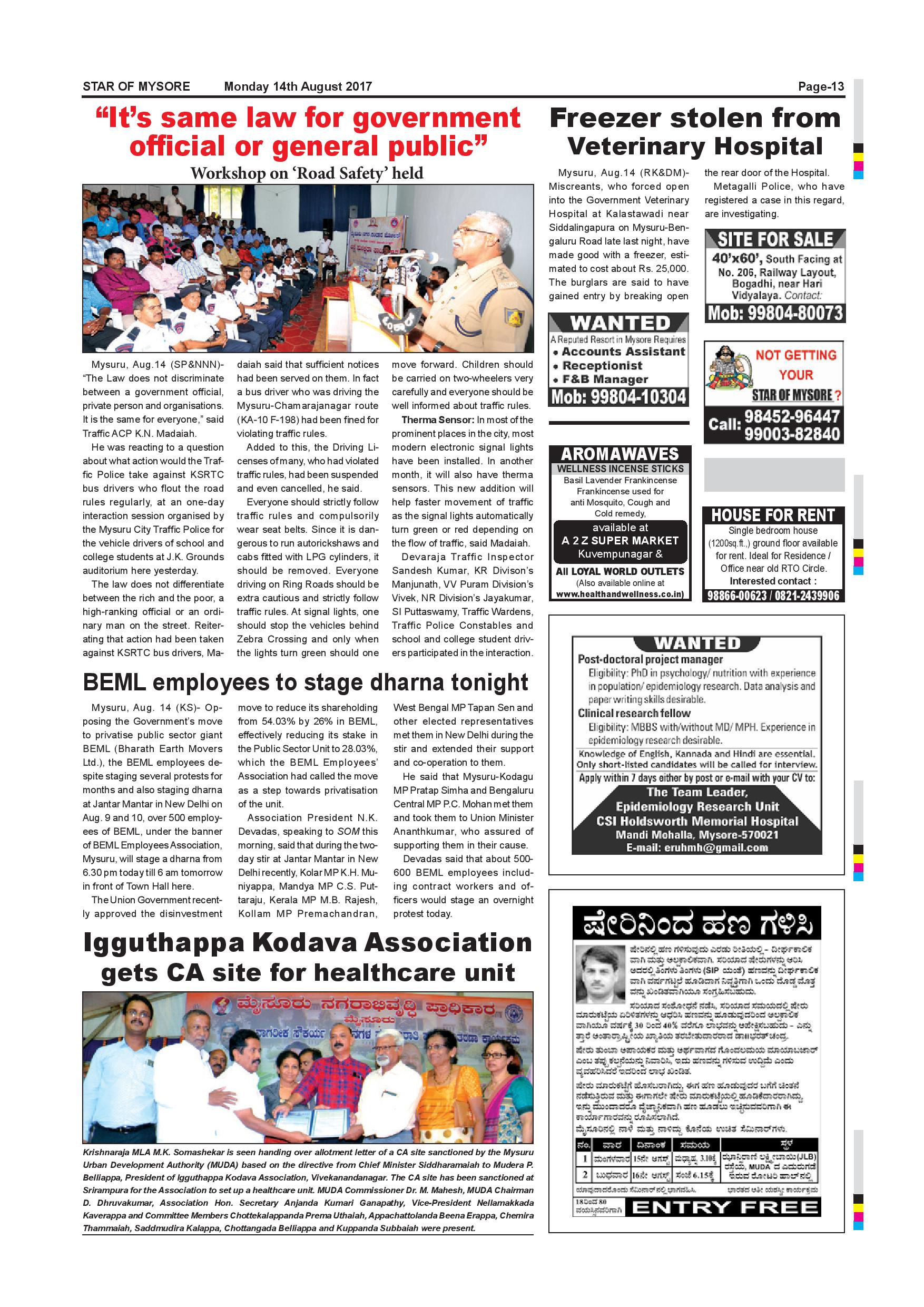 Star of Mysore Page: 13 August 14, 2017 << First << 13 >> Last >> Page 1Page 2Page 3Page 4Page 5Page 6Page 7Page 8Page 9Page 10Page 11Page 12Page 13Page 14Page 15Page 16 × Star of Mysore << First << 13 >> Last >> page-001page-002page-003page-004page-005page-006page-007page-008page-009page-010page-011page-012page-013page-014page-015page-016 page-013