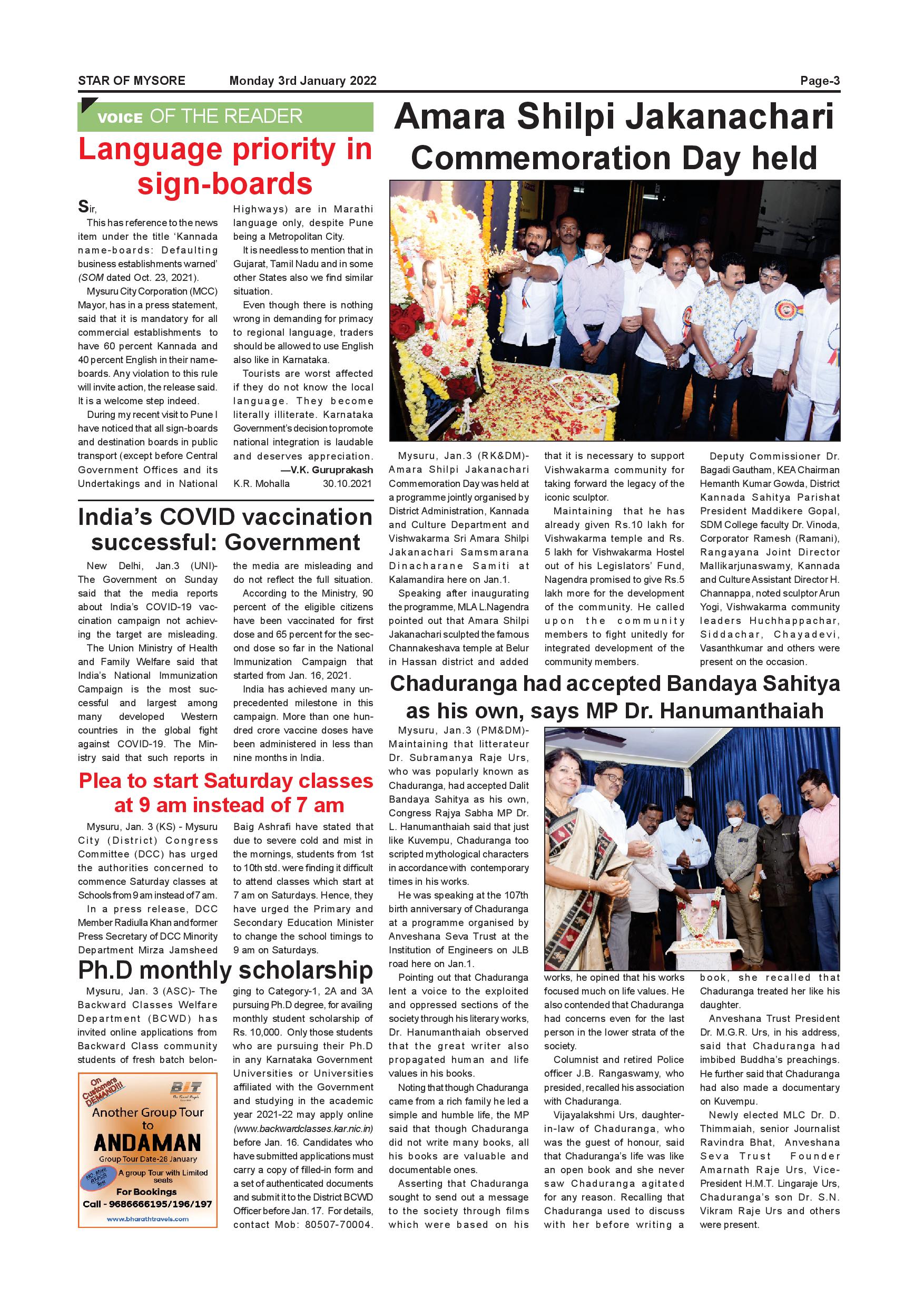 Star of Mysore Page: 3 January 03, 2022 << First << 3 >> Last >> Page 1Page 2Page 3Page 4Page 5Page 6Page 7Page 8Page 9Page 10Page 11Page 12 × Star of Mysore << First << 3 >> Last >> SOM-page-001SOM-page-002SOM-page-003SOM-page-004SOM-page-005SOM-page-006SOM-page-007SOM-page-008SOM-page-009SOM-page-010SOM-page-011SOM-page-012 SOM-page-003