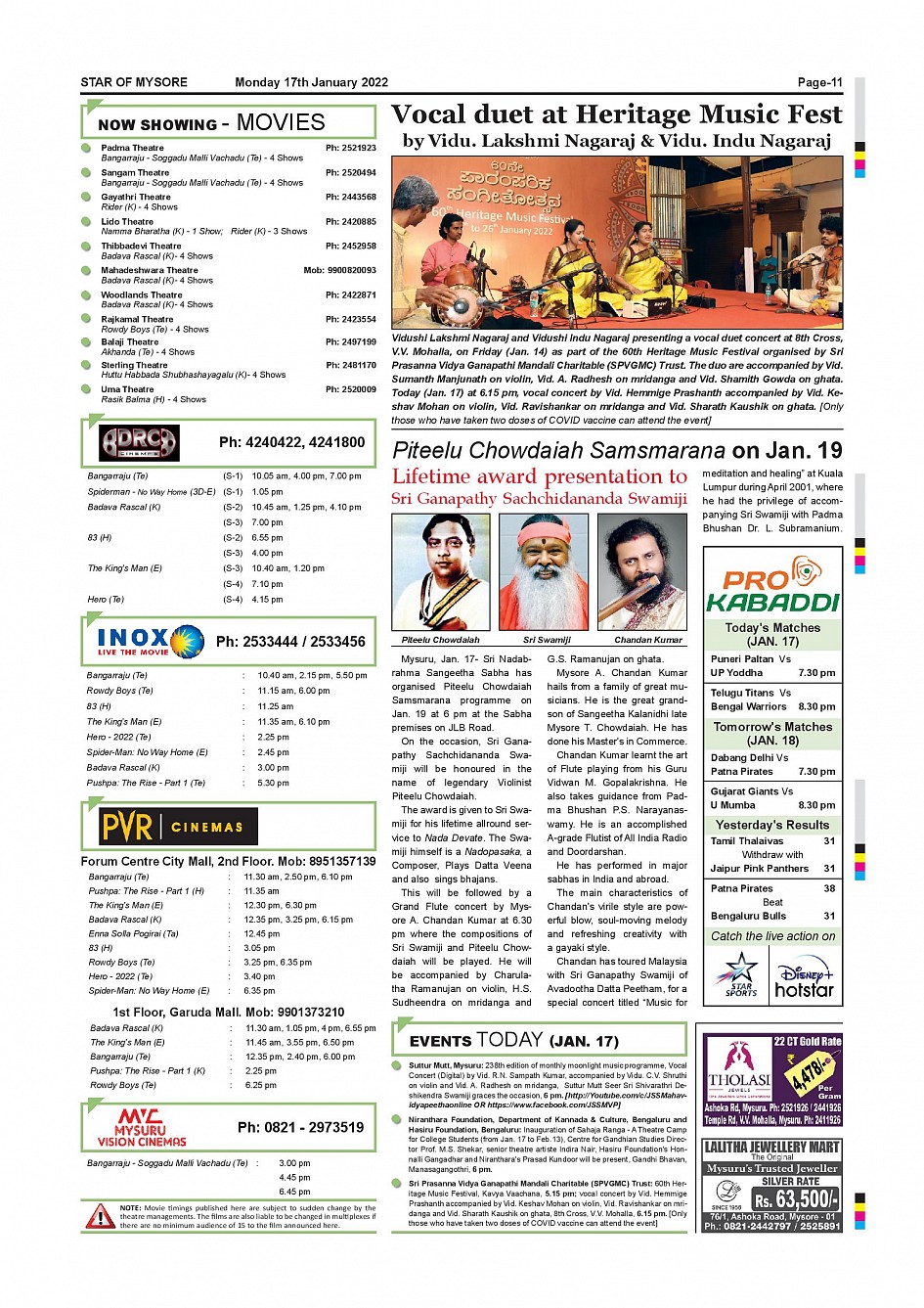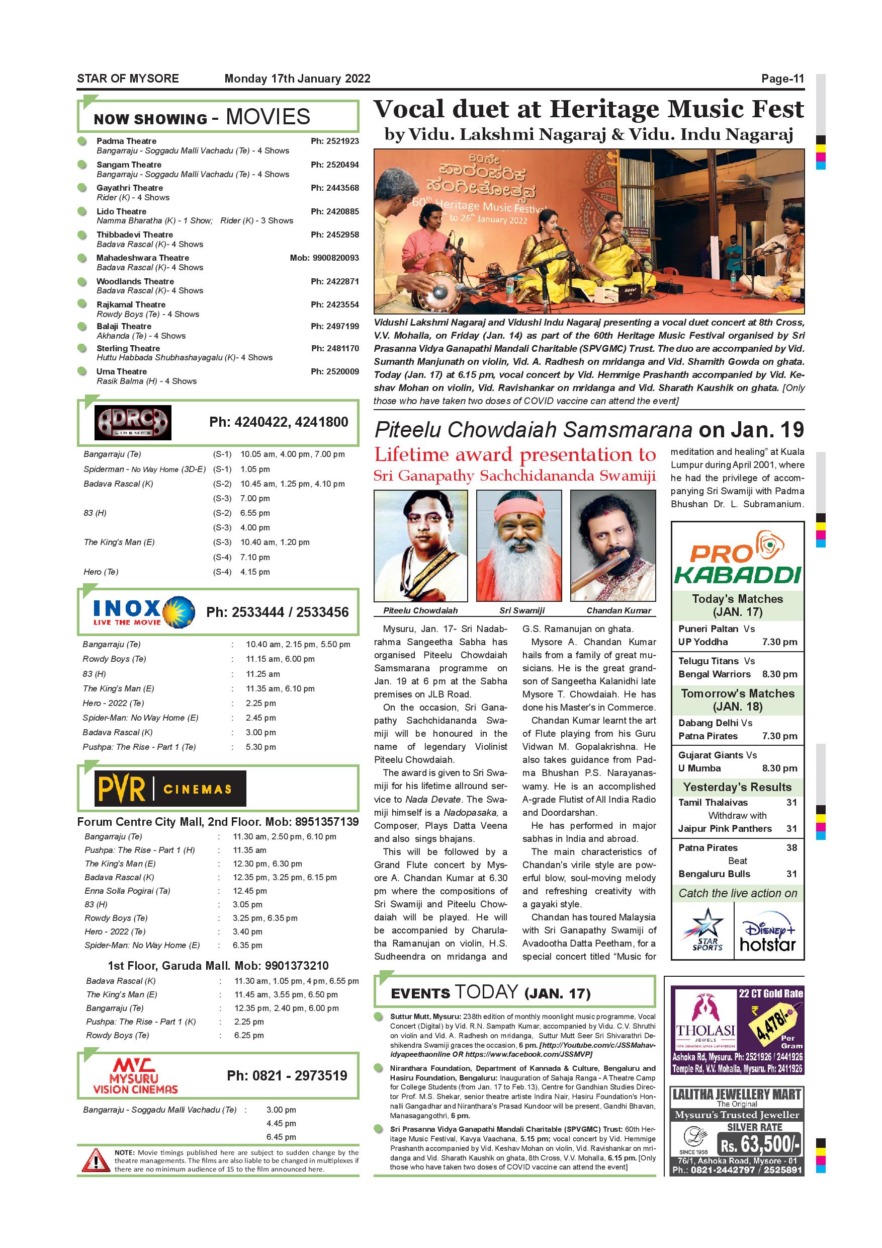 Star of Mysore Page: 10 January 17, 2022 << First << 10 >> Last >> Page 1Page 2Page 3Page 4Page 5Page 6Page 7Page 8Page 9Page 10Page 11 × Star of Mysore << First << 10 >> Last >> Page-001Page-002Page-003Page-004Page-005Page-006-007Page-008Page-009Page-010Page-011Page-012 Page-011