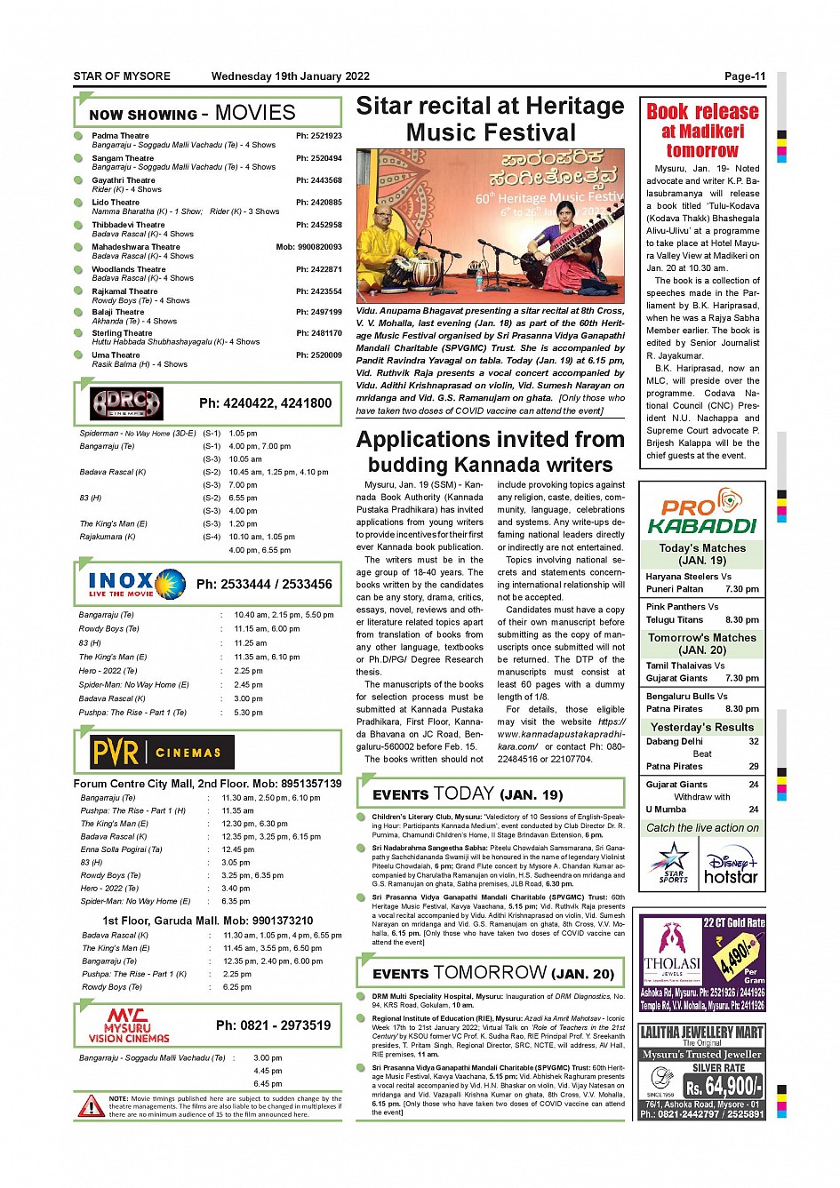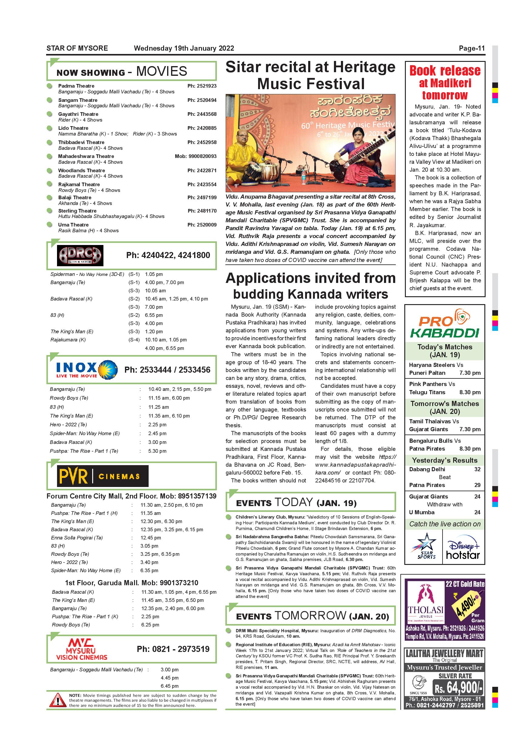 Star of Mysore Page: 10 January 19, 2022 << First << 10 >> Last >> Page 1Page 2Page 3Page 4Page 5Page 6Page 7Page 8Page 9Page 10Page 11 × Star of Mysore << First << 10 >> Last >> Page-001Page-002Page-003Page-004Page-005Page-006-007Page-008Page-009Page-010Page-011Page-012 Page-011