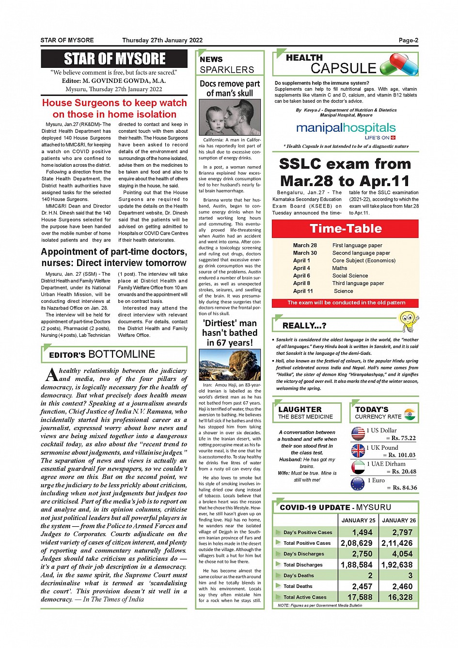 Star of Mysore Page: 2 January 27, 2022 << First << 2 >> Last >> Page 1Page 2Page 3Page 4Page 5Page 6Page 7Page 8Page 9Page 10Page 11 × Star of Mysore << First << 2 >> Last >> SOM-page-001SOM-page-002SOM-page-003SOM-page-004SOM-page-005SOM-page-006 & 007SOM-page-008SOM-page-009SOM-page-010SOM-page-011SOM-page-012 SOM-page-002