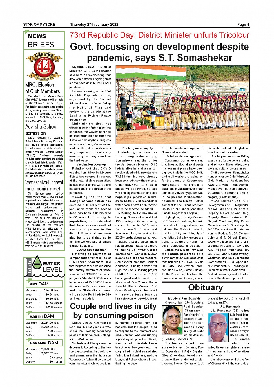 Star of Mysore Page: 4 January 27, 2022 << First << 4 >> Last >> Page 1Page 2Page 3Page 4Page 5Page 6Page 7Page 8Page 9Page 10Page 11 × Star of Mysore << First << 4 >> Last >> SOM-page-001SOM-page-002SOM-page-003SOM-page-004SOM-page-005SOM-page-006 & 007SOM-page-008SOM-page-009SOM-page-010SOM-page-011SOM-page-012 SOM-page-004