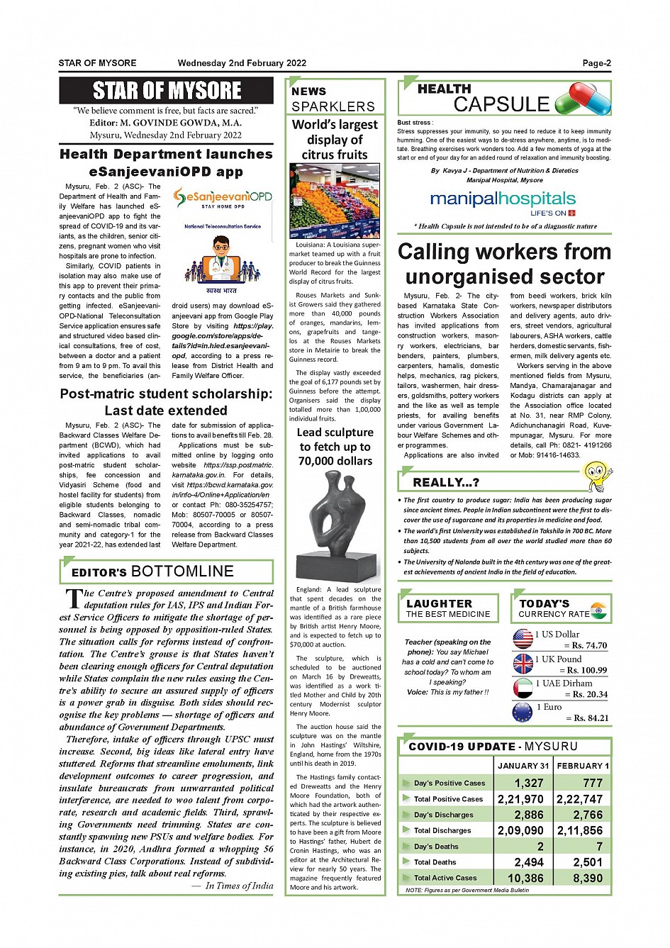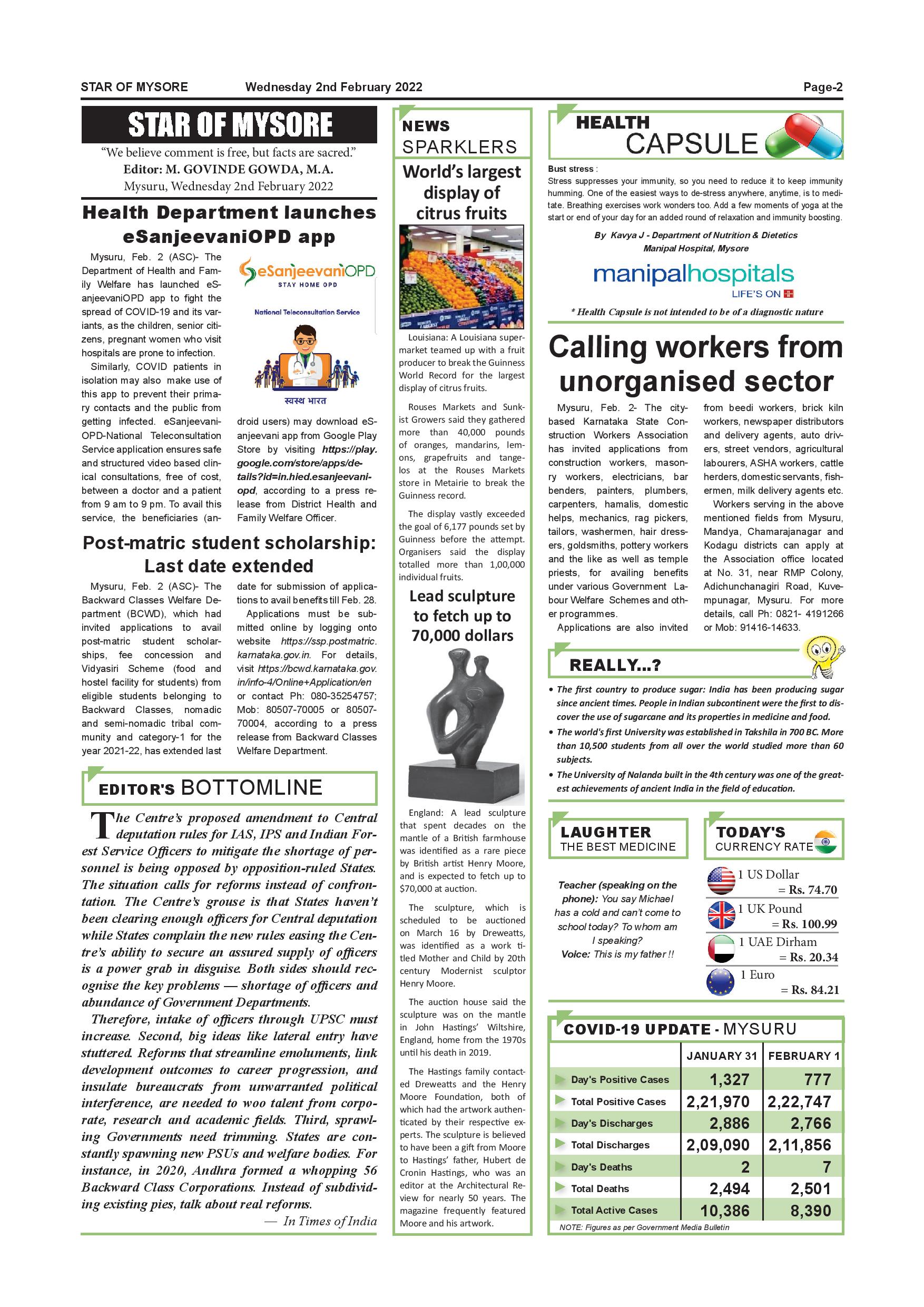 Star of Mysore Page: 2 February 02, 2022 << First << 2 >> Last >> Page 1Page 2Page 3Page 4Page 5Page 6Page 7Page 8Page 9Page 10Page 11Page 12 × Star of Mysore << First << 2 >> Last >> Page-001Page-002Page-003Page-004page-005Page-006Page-007Page-008Page-009Page-010Page-011Page-012 Page-002