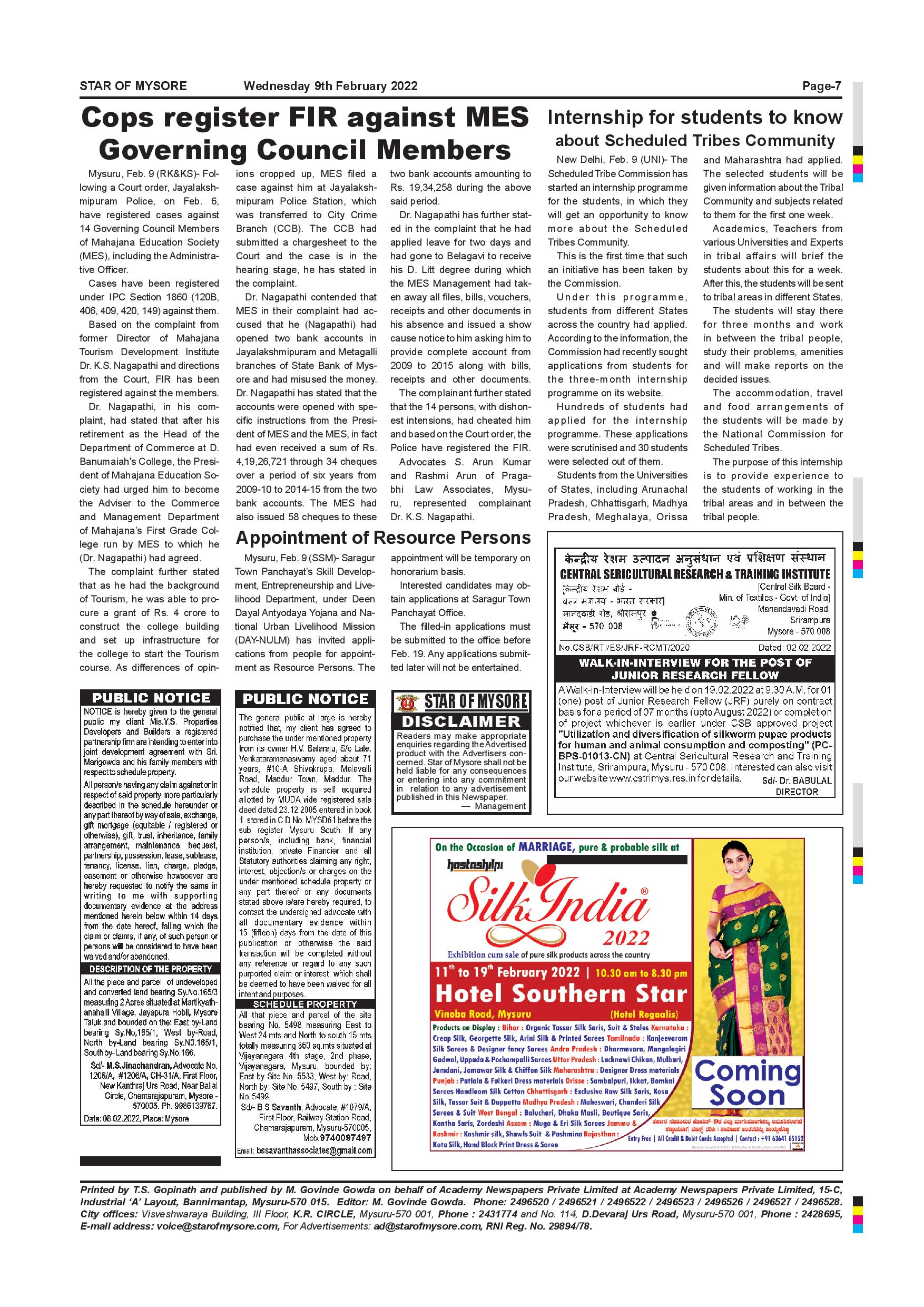 Star of Mysore Page: 7 February 09, 2022 << First << 7 >> Last >> Page 1Page 2Page 3Page 4Page 5Page 6Page 7Page 8Page 9Page 10Page 11Page 12 × Star of Mysore << First << 7 >> Last >> Page-001Page-002Page-003Page-004Page-005Page-006Page-007Page-008Page-009Page-010Page-011Page-012 Page-007