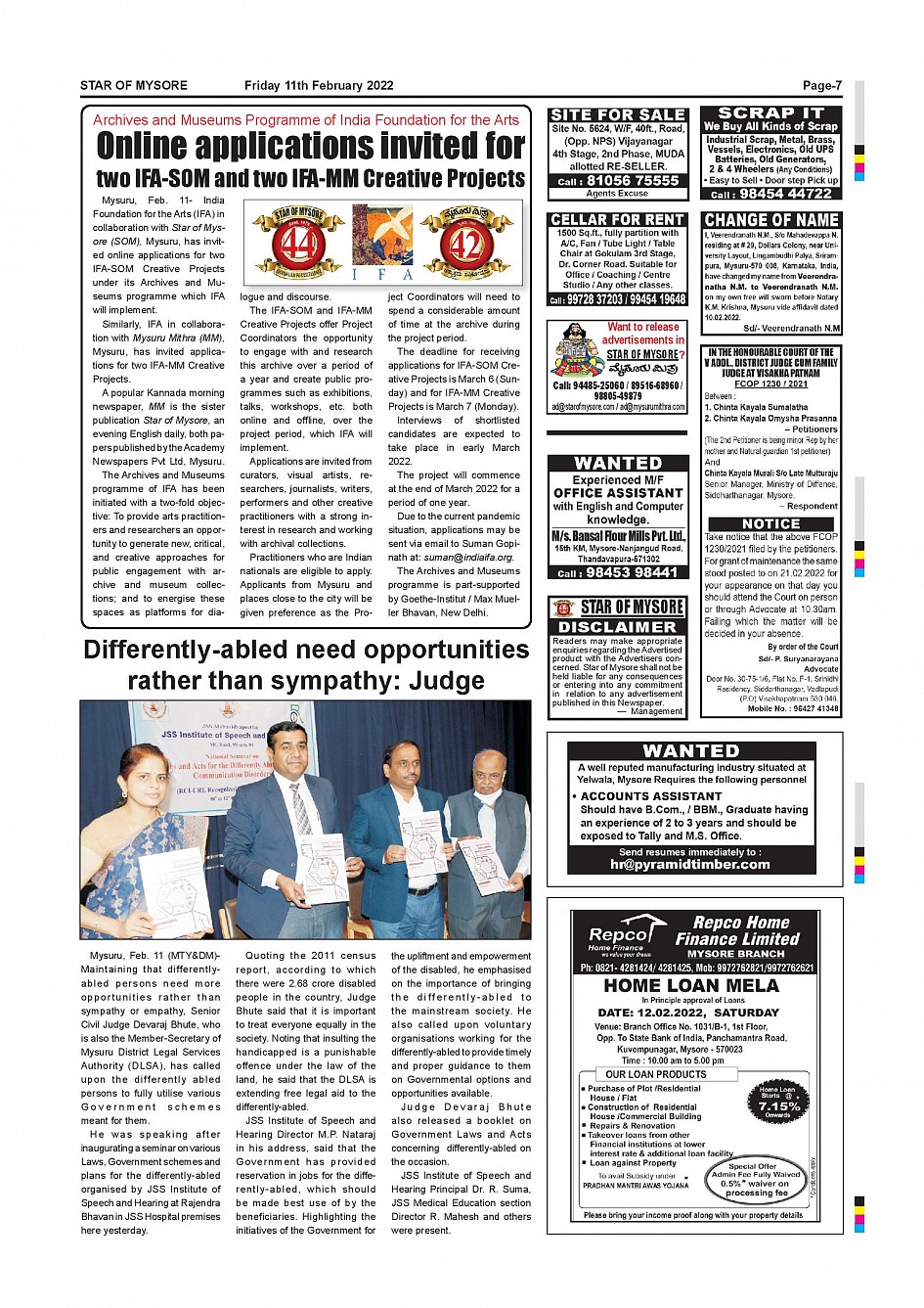 Star of Mysore Page: 7 February 11, 2022 << First << 7 >> Last >> Page 1Page 2Page 3Page 4Page 5Page 6Page 7Page 8Page 9Page 10Page 11Page 12 × Star of Mysore << First << 7 >> Last >> SOM-page-001SOM-page-002SOM-page-003SOM-page-004SOM-page-005SOM-page-006SOM-page-007SOM-page-008SOM-page-009SOM-page-010SOM-page-011SOM-page-012 SOM-page-007