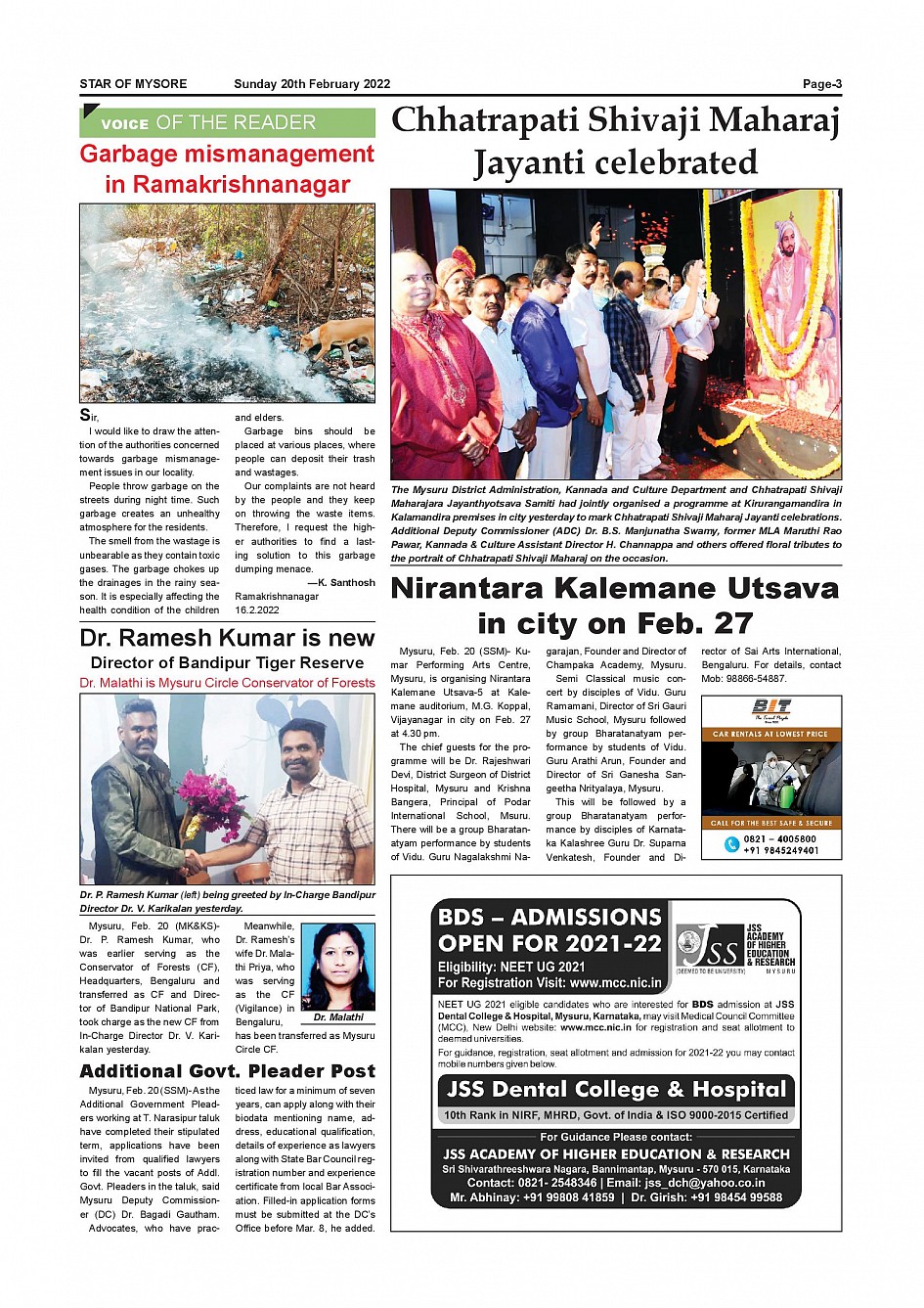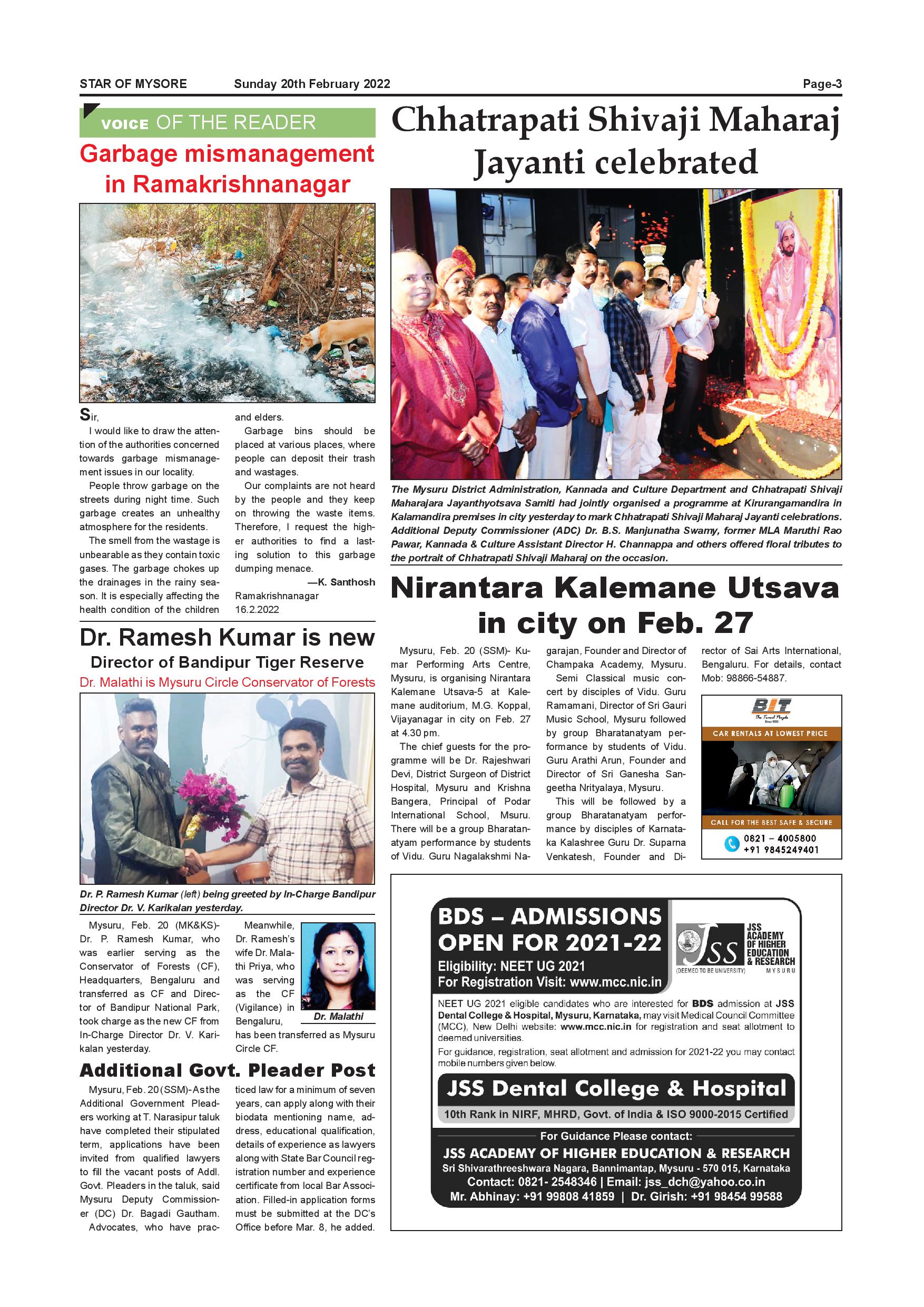 Star of Mysore Page: 3 February 20, 2022 << First << 3 >> Last >> Page 1Page 2Page 3Page 4Page 5Page 6Page 7Page 8Page 9Page 10Page 11 × Star of Mysore << First << 3 >> Last >> Page-001Page-002Page-003Page-004Page-005Page-006-007Page-008Page-009Page-010Page-011Page-012 Page-003