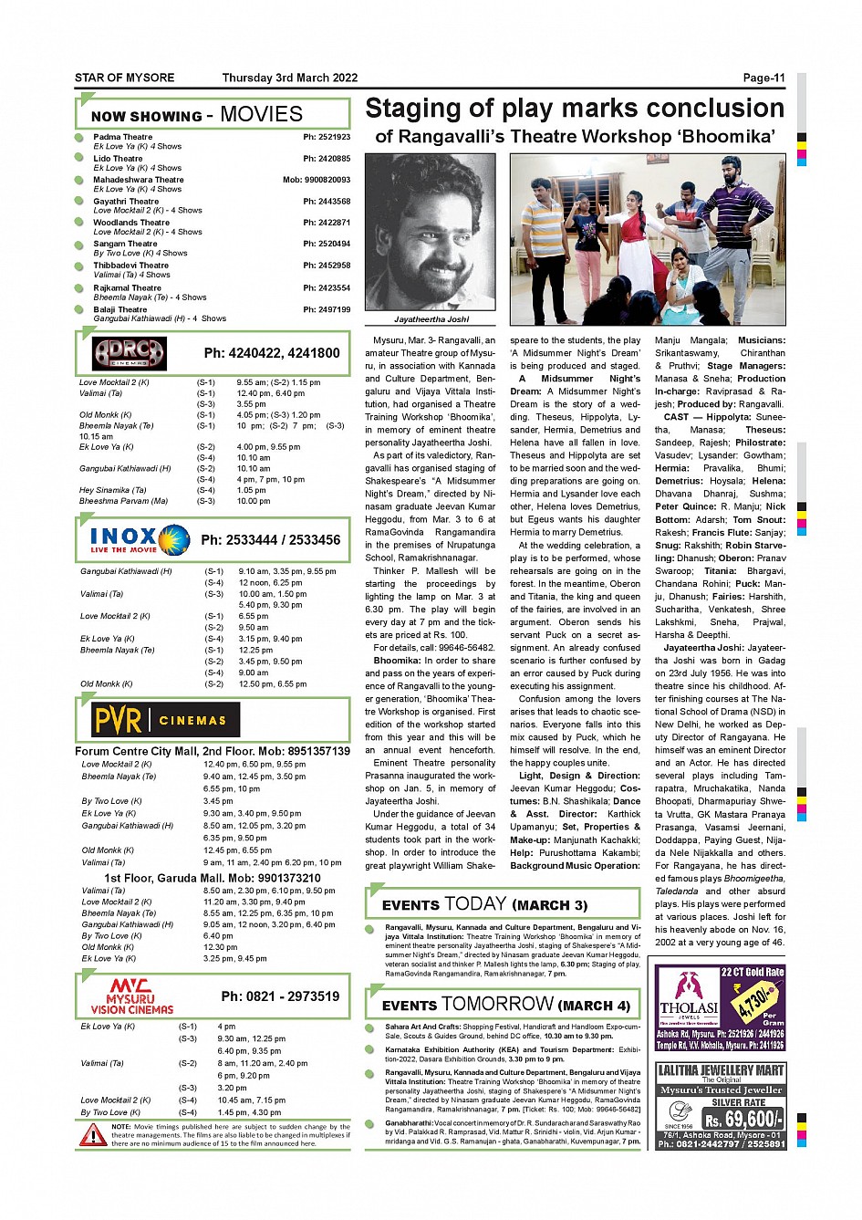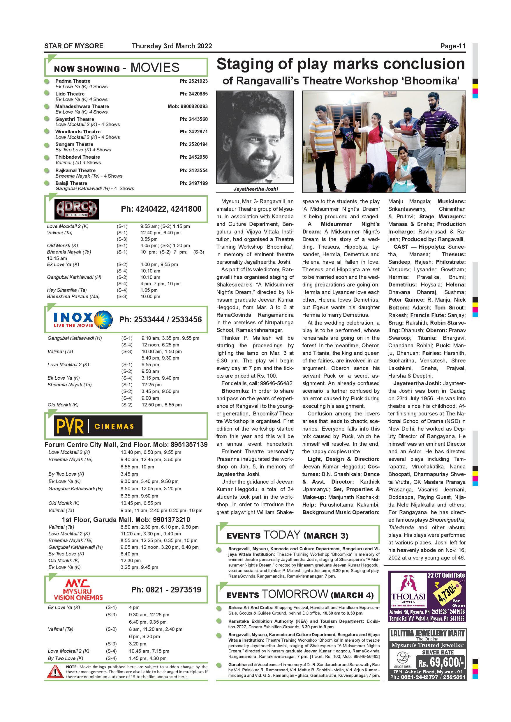 Star of Mysore Page: 11 March 03, 2022 << First << 11 >> Last >> Page 1Page 2Page 3Page 4Page 5Page 6Page 7Page 8Page 9Page 10Page 11Page 12 × Star of Mysore << First << 11 >> Last >> SOM-page-001SOM-page-002SOM-page-003SOM-page-004SOM-page-005SOM-page-006SOM-page-007SOM-page-008SOM-page-009SOM-page-010SOM-page-011SOM-page-012 SOM-page-011