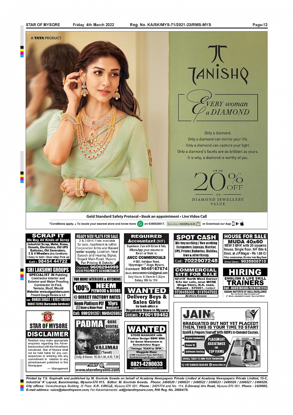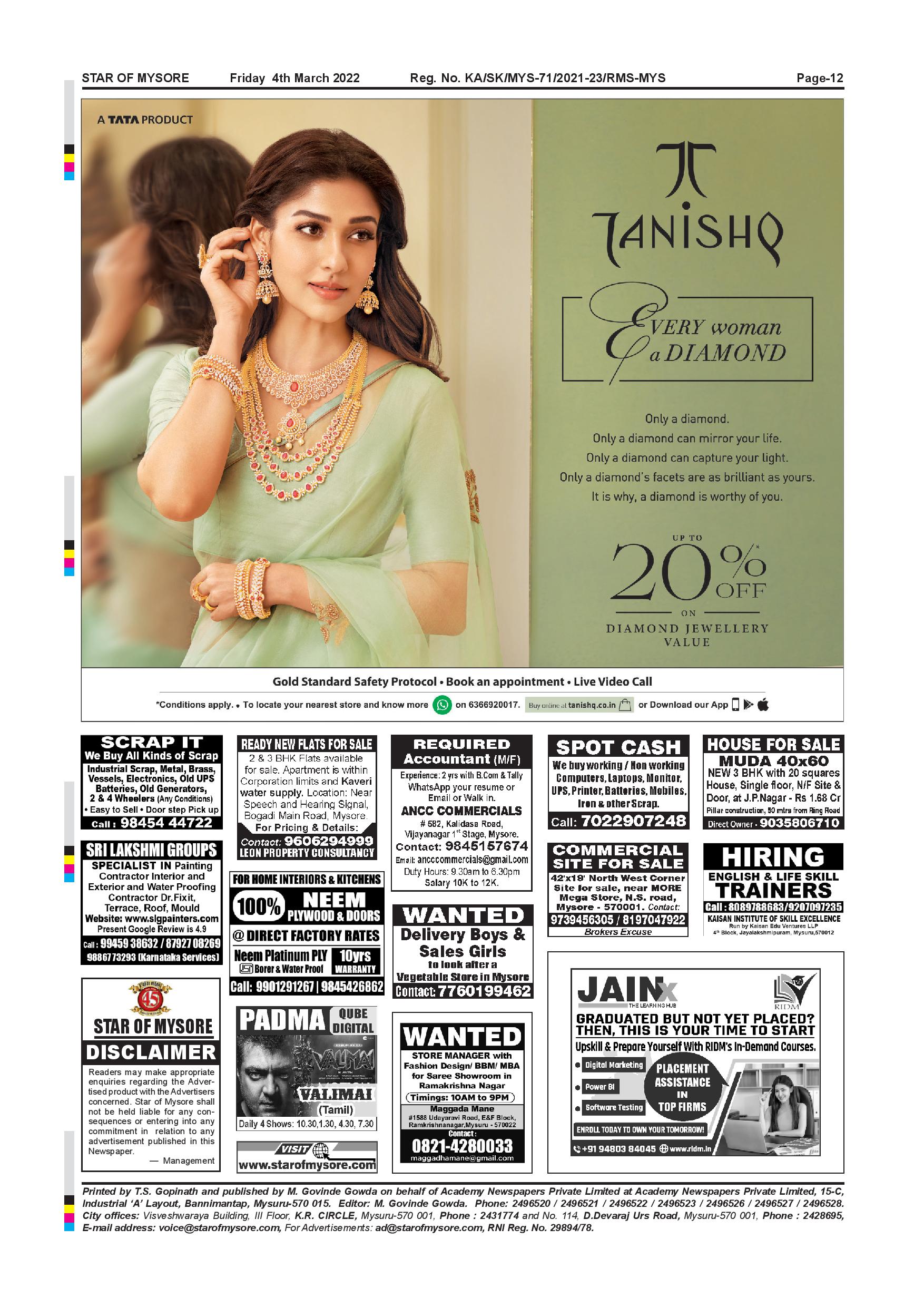Star of Mysore Page: 12 March 04, 2022 << First << 12 >> Last >> Page 1Page 2Page 3Page 4Page 5Page 6Page 7Page 8Page 9Page 10Page 11Page 12 × Star of Mysore << First << 12 >> Last >> SOM-page-001SOM-page-002SOM-page-003SOM-page-004SOM-page-005SOM-page-006SOM-page-007SOM-page-008SOM-page-009SOM-page-010SOM-page-011SOM-page-012 SOM-page-012