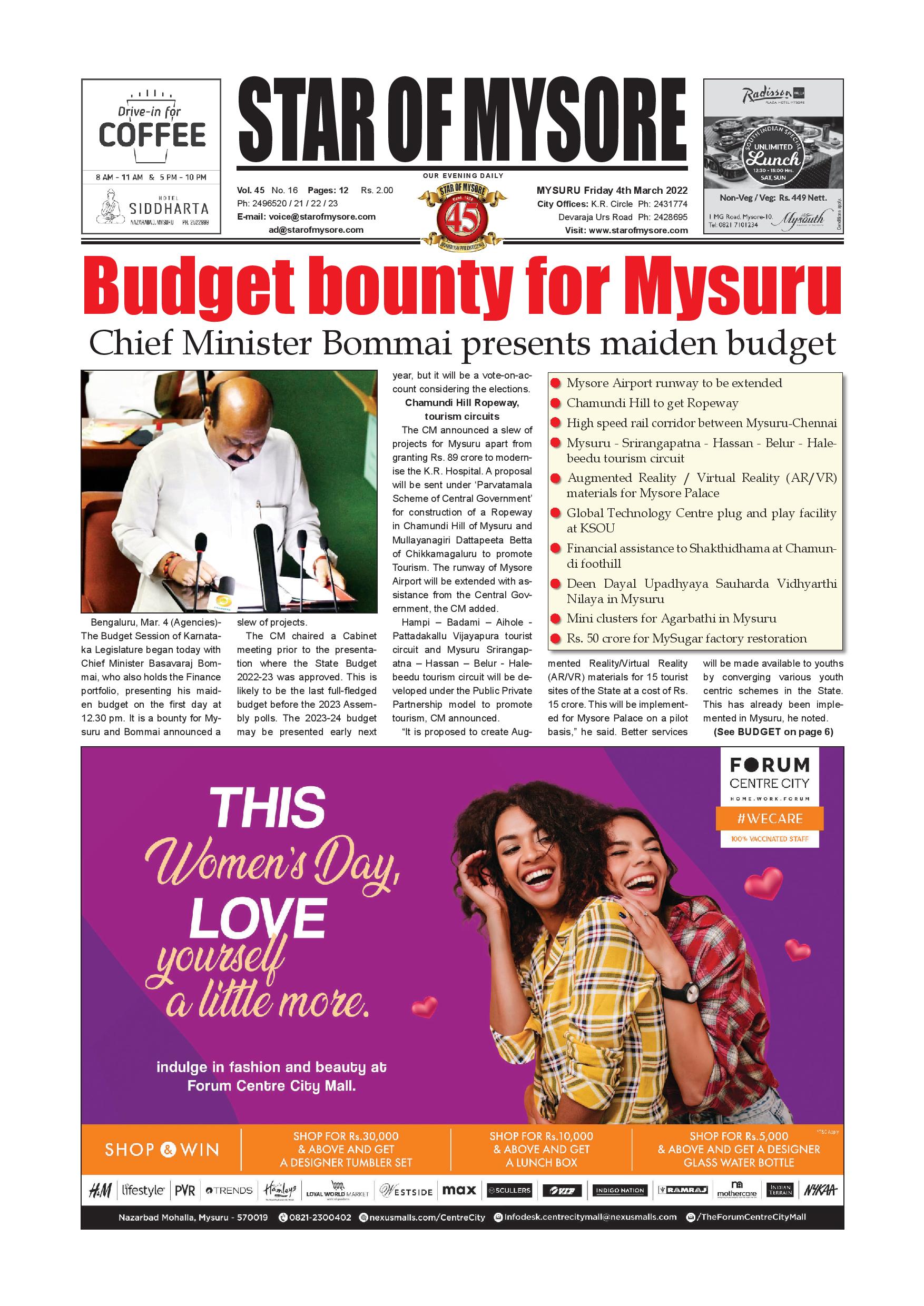 Star of Mysore Page: 3 March 04, 2022 << First << 3 >> Last >> Page 1Page 2Page 3Page 4Page 5Page 6Page 7Page 8Page 9Page 10Page 11Page 12 × Star of Mysore << First << 3 >> Last >> SOM-page-001SOM-page-002SOM-page-003SOM-page-004SOM-page-005SOM-page-006SOM-page-007SOM-page-008SOM-page-009SOM-page-010SOM-page-011SOM-page-012 SOM-page-003