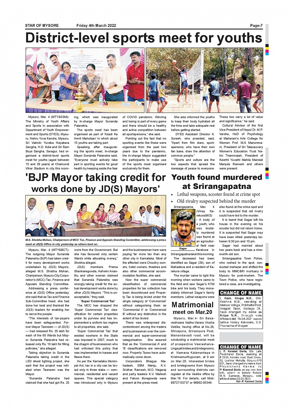 Star of Mysore Page: 7 March 04, 2022 << First << 7 >> Last >> Page 1Page 2Page 3Page 4Page 5Page 6Page 7Page 8Page 9Page 10Page 11Page 12 × Star of Mysore << First << 7 >> Last >> SOM-page-001SOM-page-002SOM-page-003SOM-page-004SOM-page-005SOM-page-006SOM-page-007SOM-page-008SOM-page-009SOM-page-010SOM-page-011SOM-page-012 SOM-page-007