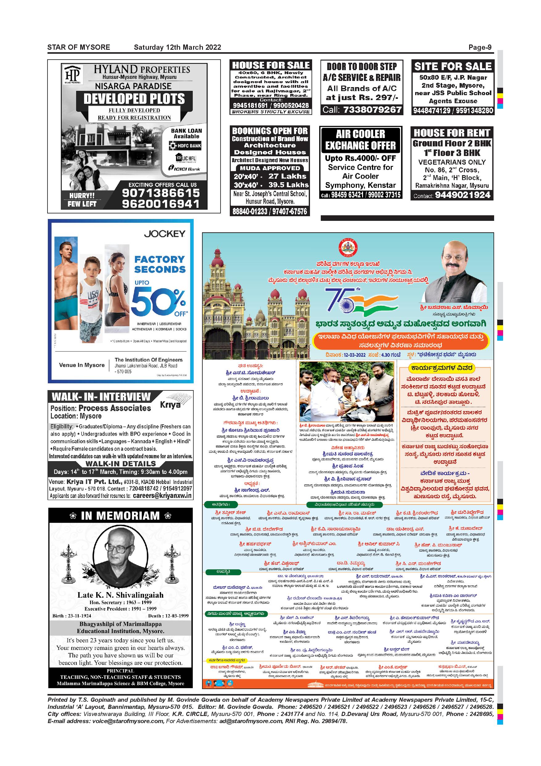 Star of Mysore Page: 9 March 12, 2022 << First << 9 >> Last >> Page 1Page 2Page 3Page 4Page 5Page 6Page 7Page 8Page 9Page 10Page 11Page 12 × Star of Mysore << First << 9 >> Last >> Page-001Page-002Page-003Page-004Page-005Page-006Page-007Page-008Page-009Page-010Page-011Page-012 Page-009
