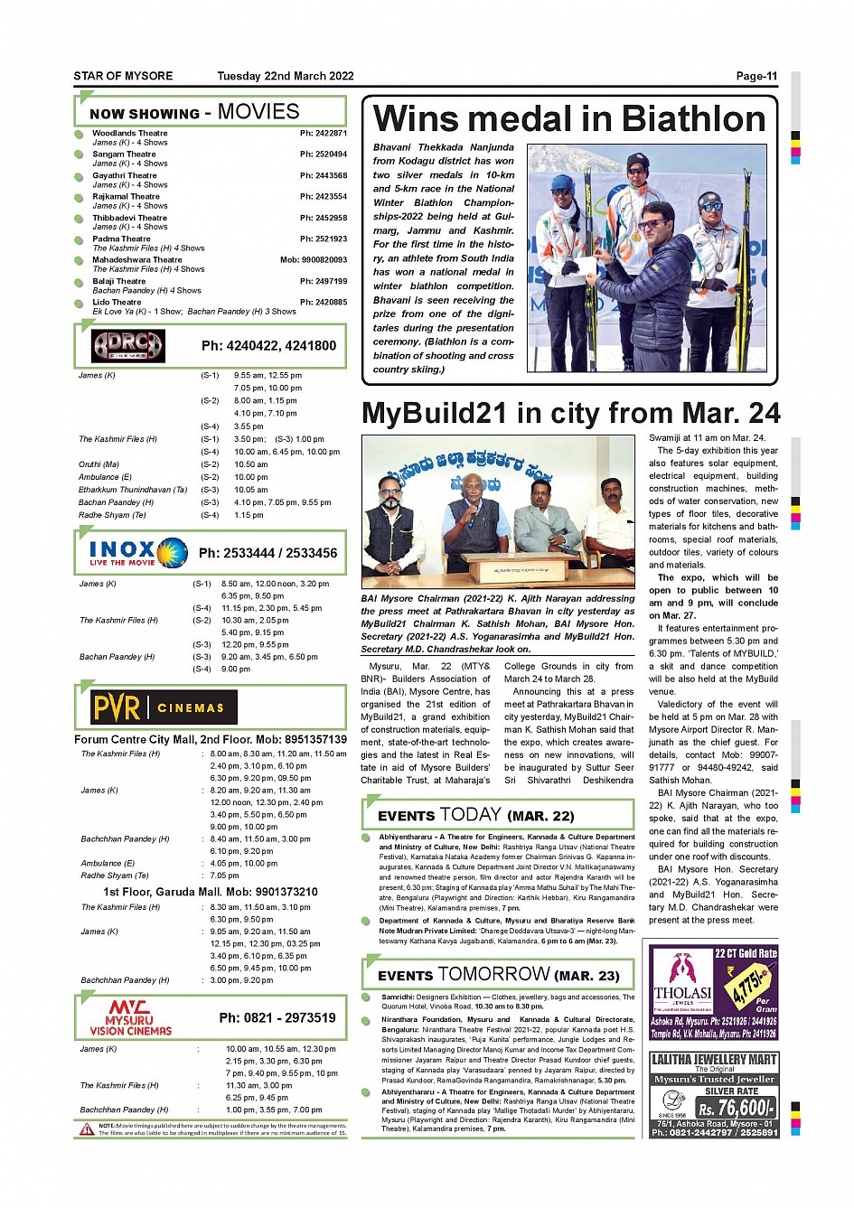 Star of Mysore Page: 11 March 22, 2022 << First << 11 >> Last >> Page 1Page 2Page 3Page 4Page 5Page 6Page 7Page 8Page 9Page 10Page 11Page 12 × Star of Mysore << First << 11 >> Last >> SOM-page-001SOM-page-002SOM-page-003SOM-page-004SOM-page-005SOM-page-006SOM-page-007SOM-page-008SOM-page-009SOM-page-010SOM-page-011SOM-page-012 SOM-page-011