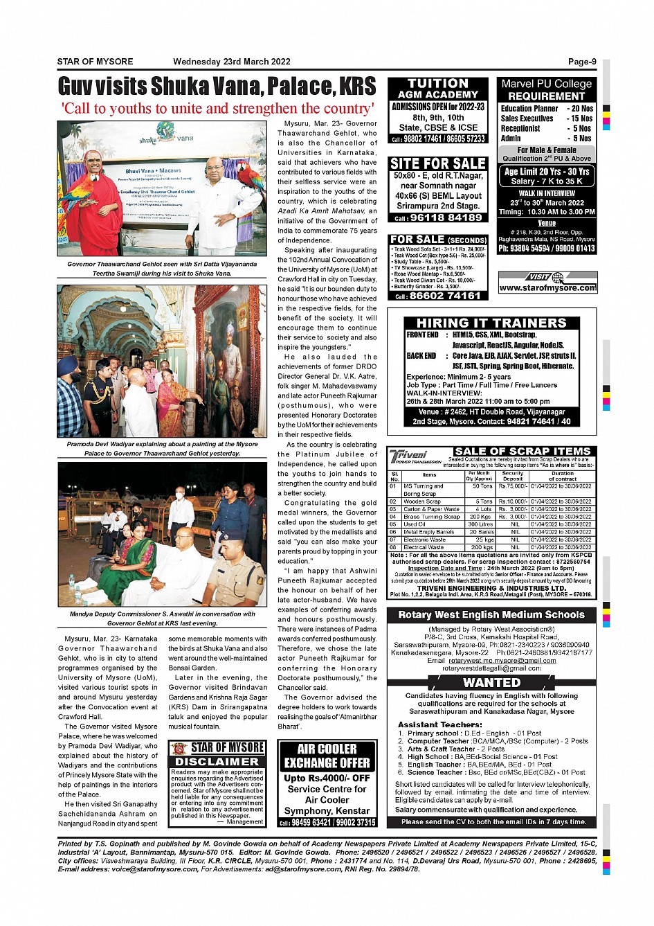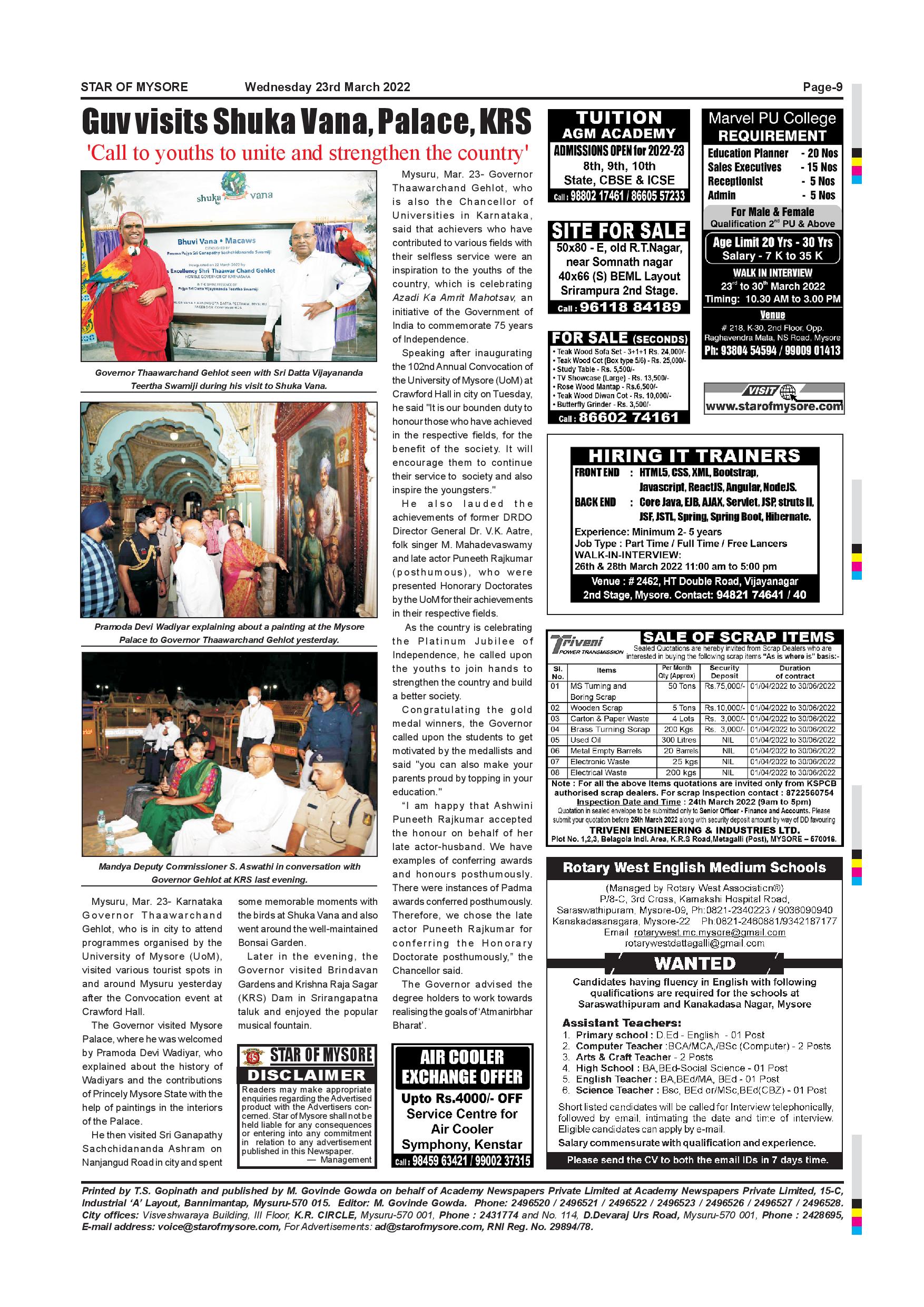Star of Mysore Page: 9 March 23, 2022 << First << 9 >> Last >> Page 1Page 2Page 3Page 4Page 5Page 6Page 7Page 8Page 9Page 10Page 11Page 12 × Star of Mysore << First << 9 >> Last >> Page-001Page-002Page-003Page-004Page-005Page-006Page-007Page-008Page-009Page-010Page-011Page-012 Page-009