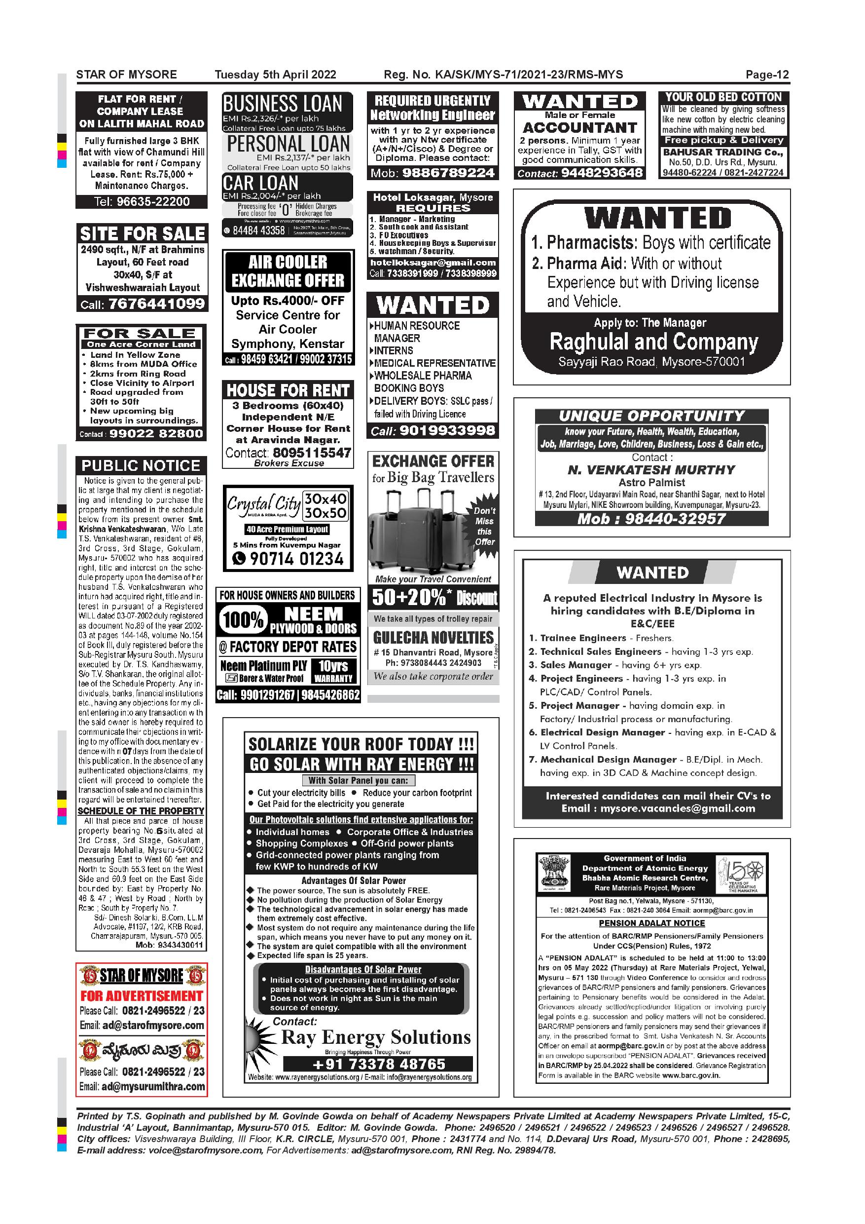 Star of Mysore Page: 12 April 05, 2022 << First << 12 >> Last >> Page 1Page 2Page 3Page 4Page 5Page 6Page 7Page 8Page 9Page 10Page 11Page 12 × Star of Mysore << First << 12 >> Last >> Page-001Page-002Page-003Page-004Page-005Page-006Page-007Page-008Page-009Page-010Page-011Page-012 Page-012