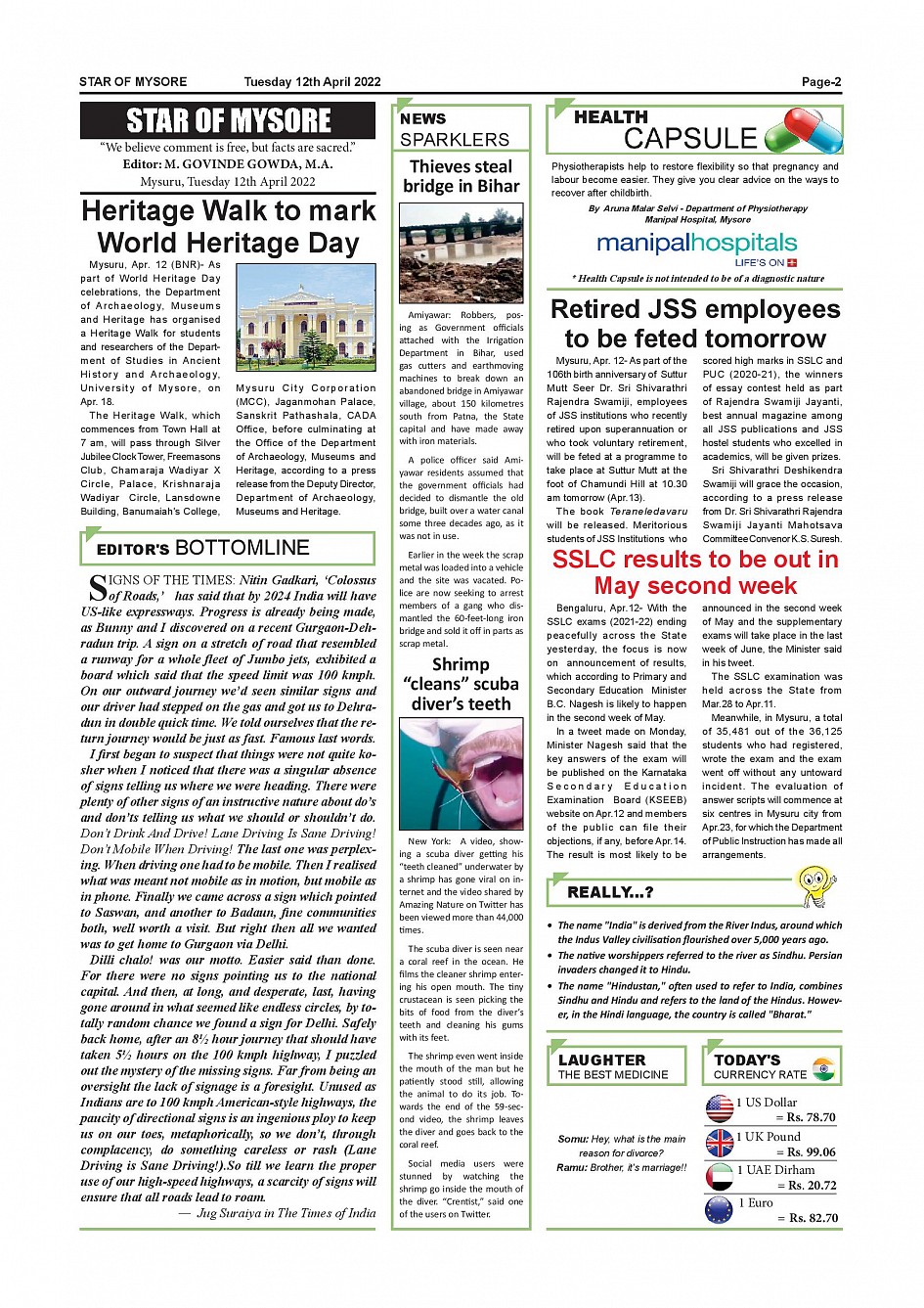 Star of Mysore Page: 2 April 12, 2022 << First << 2 >> Last >> Page 1Page 2Page 3Page 4Page 5Page 6Page 7Page 8Page 9Page 10Page 11Page 12 × Star of Mysore << First << 2 >> Last >> SOM-page-001SOM-page-002SOM-page-003SOM-page-004SOM-page-005SOM-page-006SOM-page-007SOM-page-008SOM-page-009SOM-page-010SOM-page-011SOM-page-012 SOM-page-002