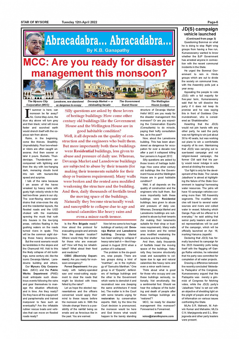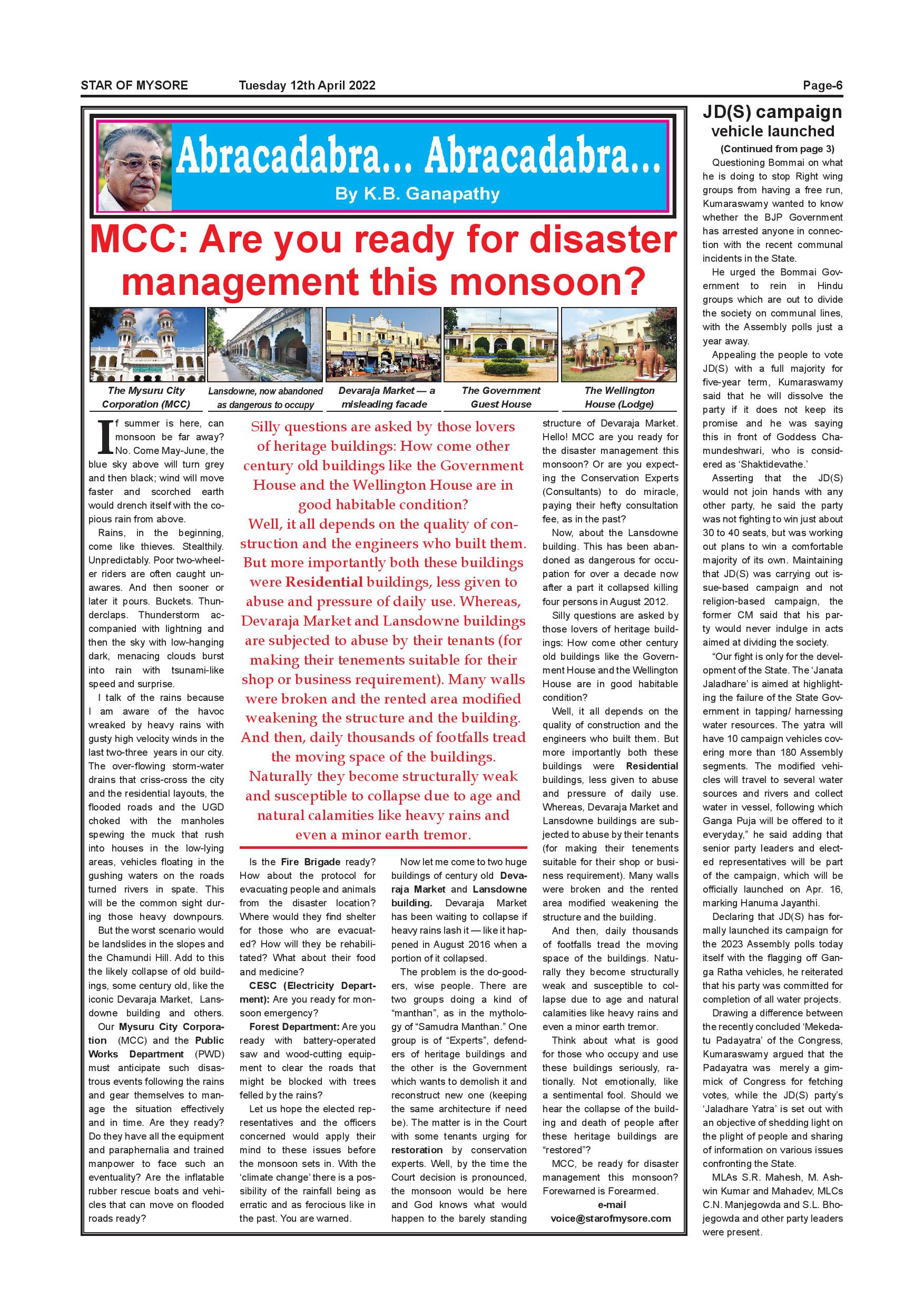 Star of Mysore Page: 6 April 12, 2022 << First << 6 >> Last >> Page 1Page 2Page 3Page 4Page 5Page 6Page 7Page 8Page 9Page 10Page 11Page 12 × Star of Mysore << First << 6 >> Last >> SOM-page-001SOM-page-002SOM-page-003SOM-page-004SOM-page-005SOM-page-006SOM-page-007SOM-page-008SOM-page-009SOM-page-010SOM-page-011SOM-page-012 SOM-page-006