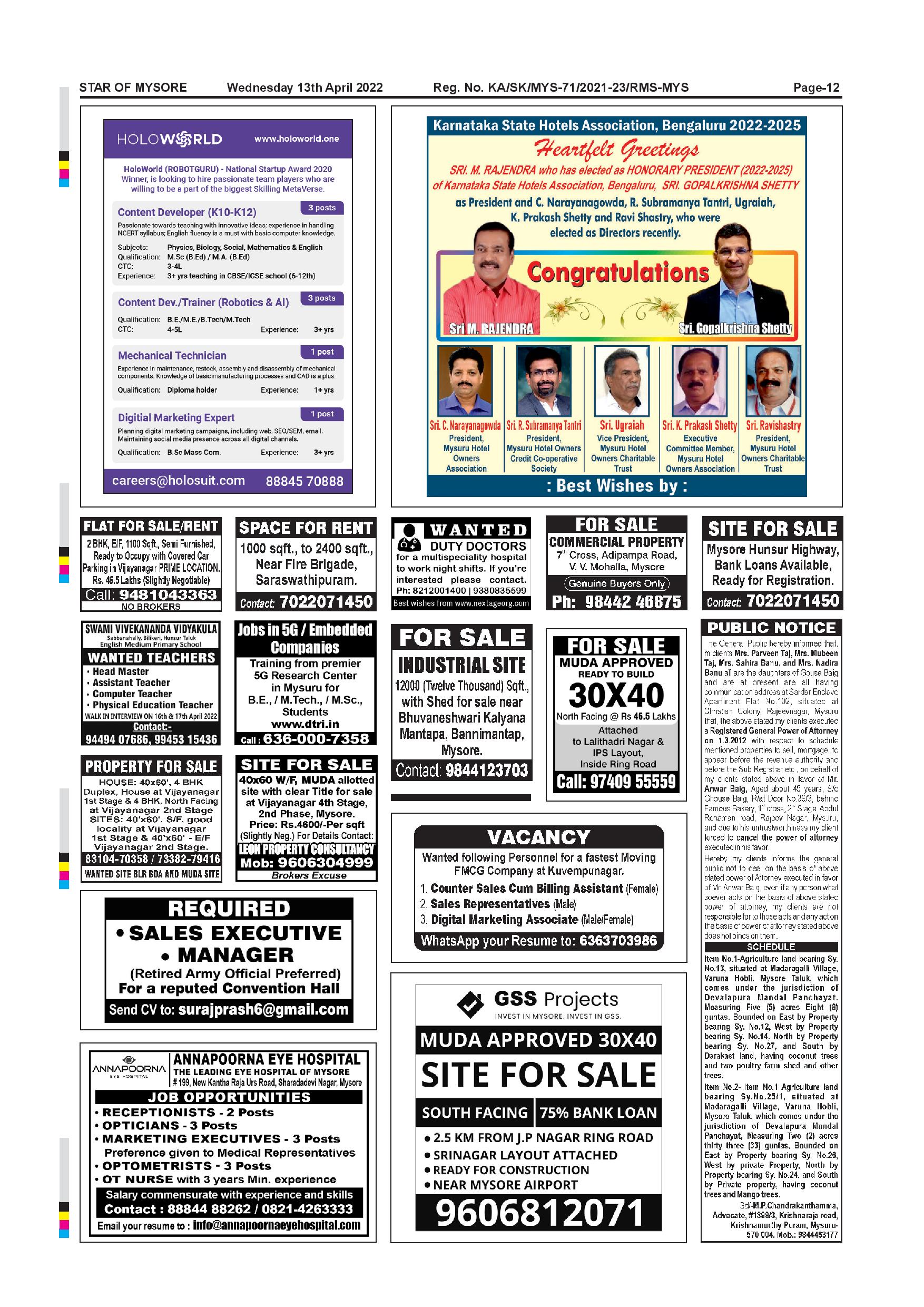 Star of Mysore Page: 12 April 13, 2022 << First << 12 >> Last >> Page 1Page 2Page 3Page 4Page 5Page 6Page 7Page 8Page 9Page 10Page 11Page 12 × Star of Mysore << First << 12 >> Last >> Page-001Page-002Page-003Page-004Page-005Page-006Page-007Page-008Page-009Page-010Page-011Page-012 Page-012
