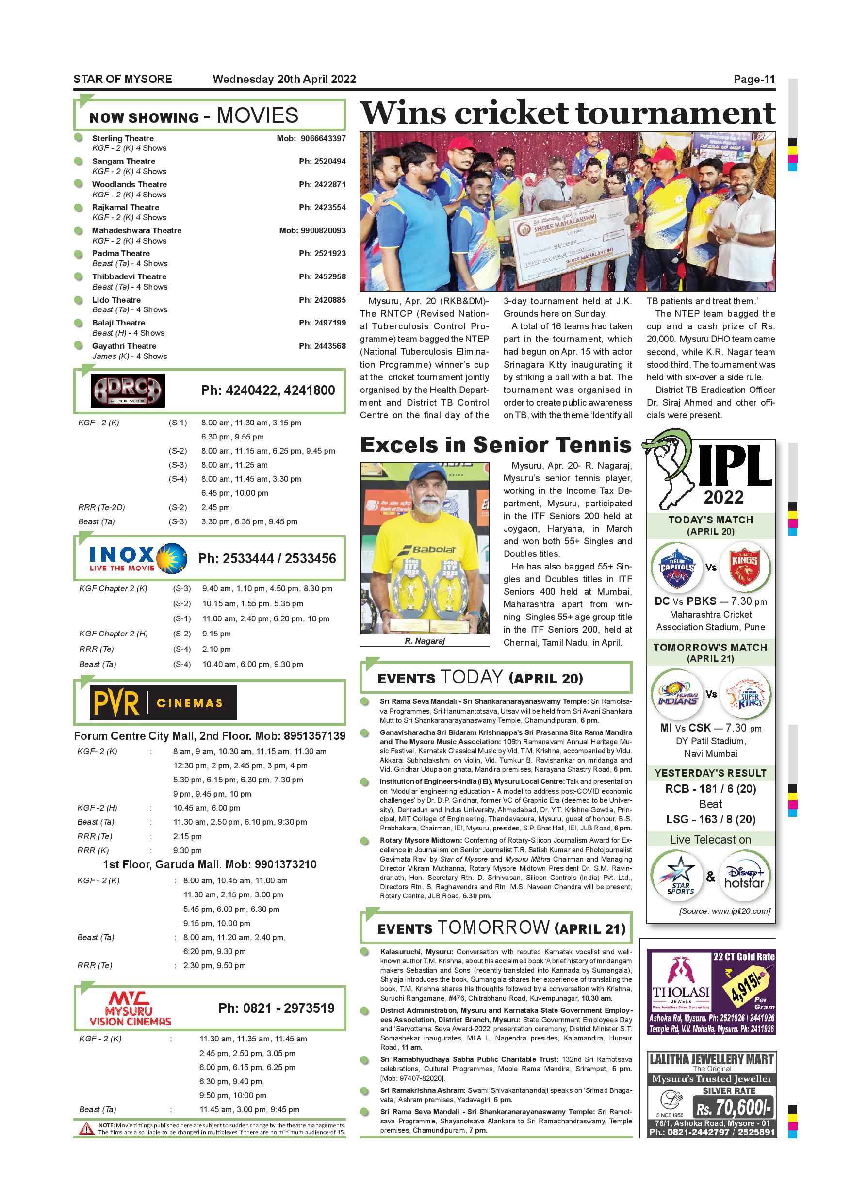 Star of Mysore Page: 11 April 20, 2022 << First << 11 >> Last >> Page 1Page 2Page 3Page 4Page 5Page 6Page 7Page 8Page 9Page 10Page 11Page 12 × Star of Mysore << First << 11 >> Last >> SOM-page-001SOM-page-002SOM-page-003SOM-page-004SOM-page-005SOM-page-006SOM-page-007SOM-page-008SOM-page-009SOM-page-010SOM-page-011SOM-page-012 SOM-page-011