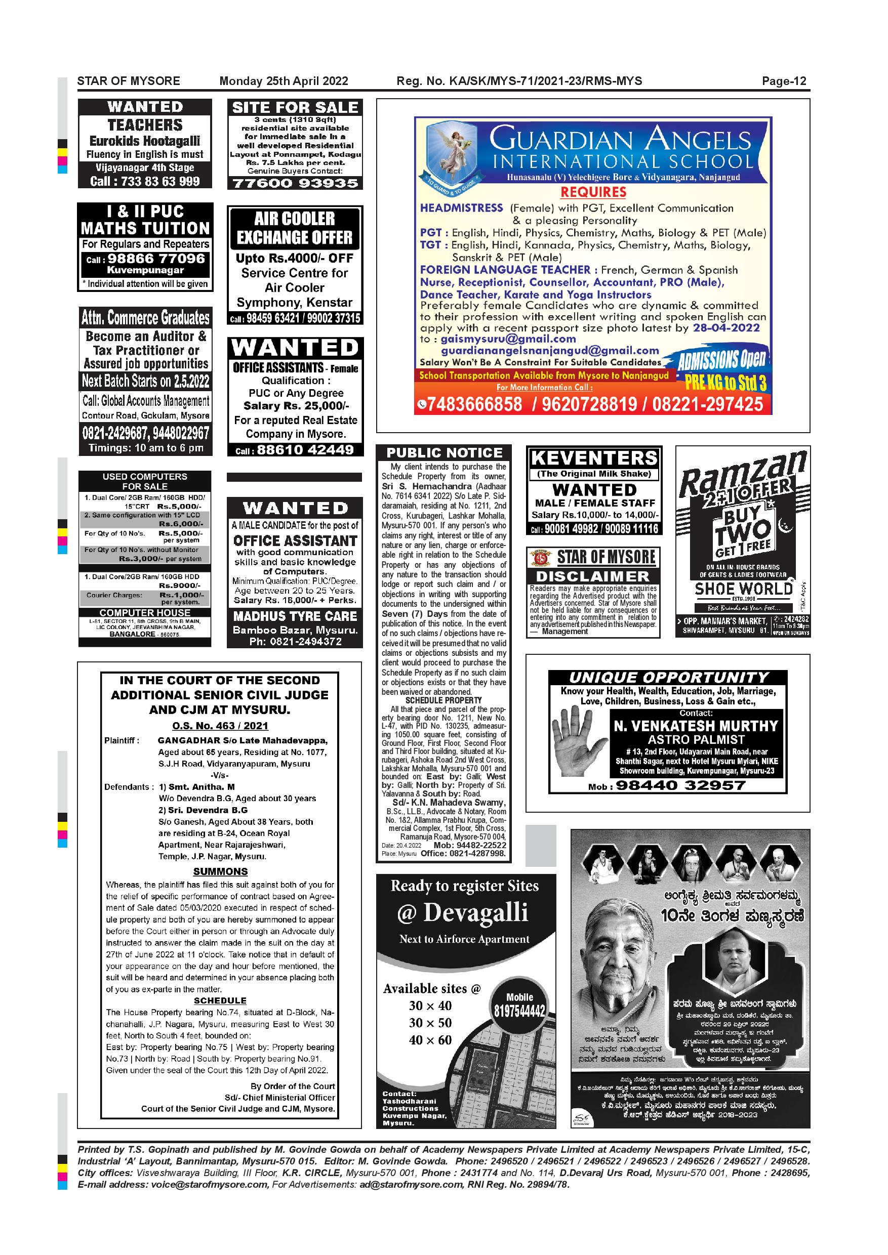 Star of Mysore Page: 11 April 25, 2022 << First << 11 >> Last >> Page 1Page 2Page 3Page 4Page 5Page 6Page 7Page 8Page 9Page 10Page 11 × Star of Mysore << First << 11 >> Last >> Page-001Page-002Page-003Page-004Page-005Page-006-007Page-008Page-009Page-010Page-011Page-012 Page-012