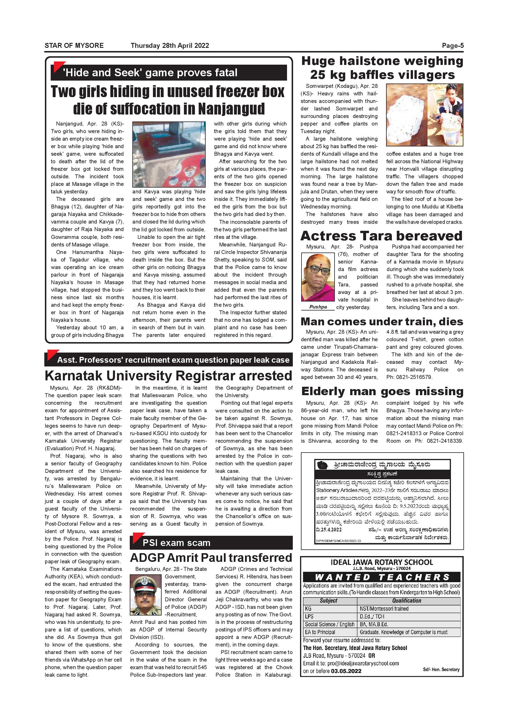 Star of Mysore Page: 5 April 28, 2022 << First << 5 >> Last >> Page 1Page 2Page 3Page 4Page 5Page 6Page 7Page 8Page 9Page 10Page 11Page 12 × Star of Mysore << First << 5 >> Last >> Page-001Page-002Page-003Page-004Page-005Page-006Page-007Page-008Page-009Page-010Page-011Page-012 Page-005