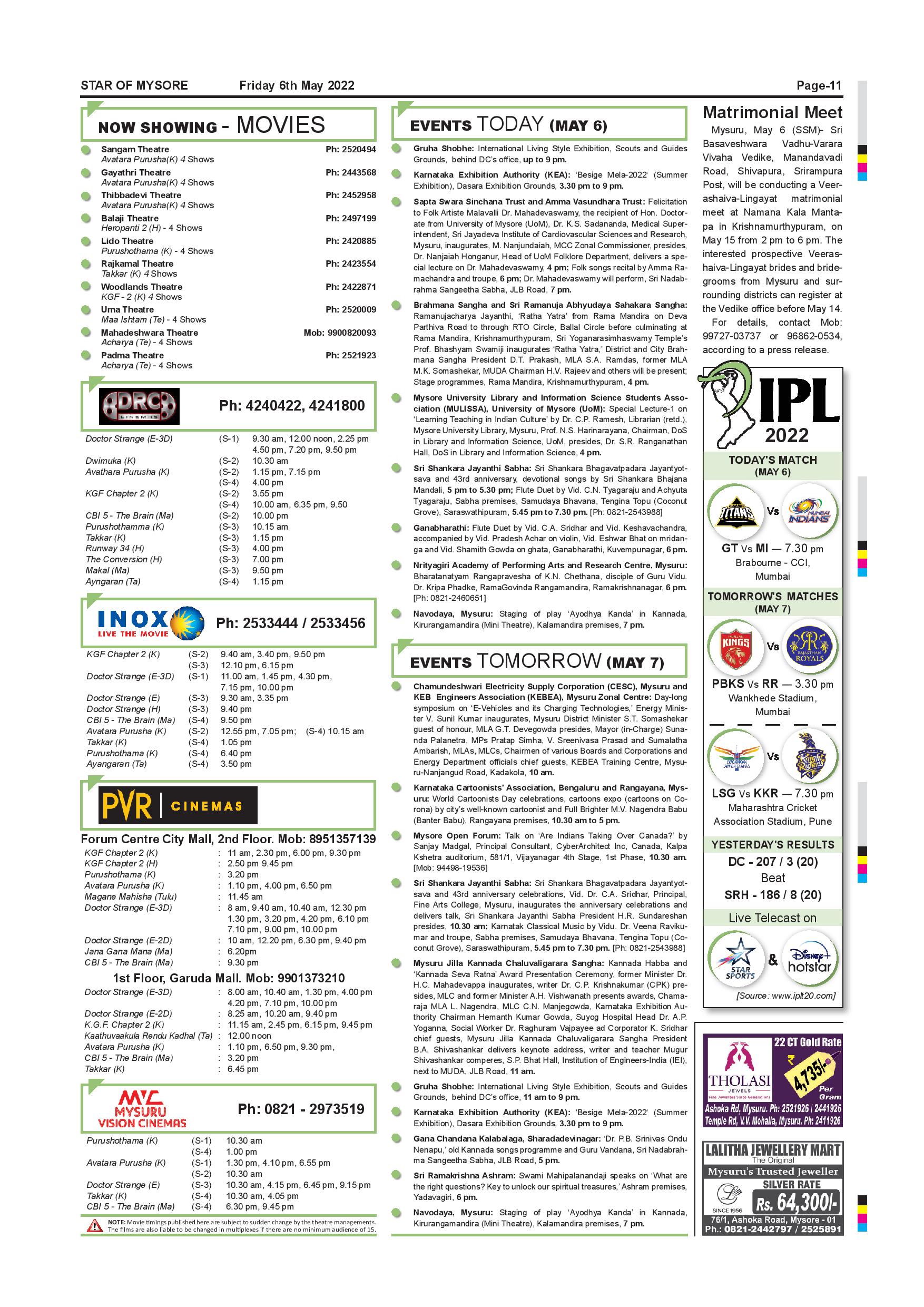 Star of Mysore Page: 11 May 06, 2022 << First << 11 >> Last >> Page 1Page 2Page 3Page 4Page 5Page 6Page 7Page 8Page 9Page 10Page 11Page 12 × Star of Mysore << First << 11 >> Last >> SOM-page-001SOM-page-002SOM-page-003SOM-page-004SOM-page-005SOM-page-006SOM-page-007SOM-page-008SOM-page-009SOM-page-010SOM-page-011SOM-page-012 SOM-page-011