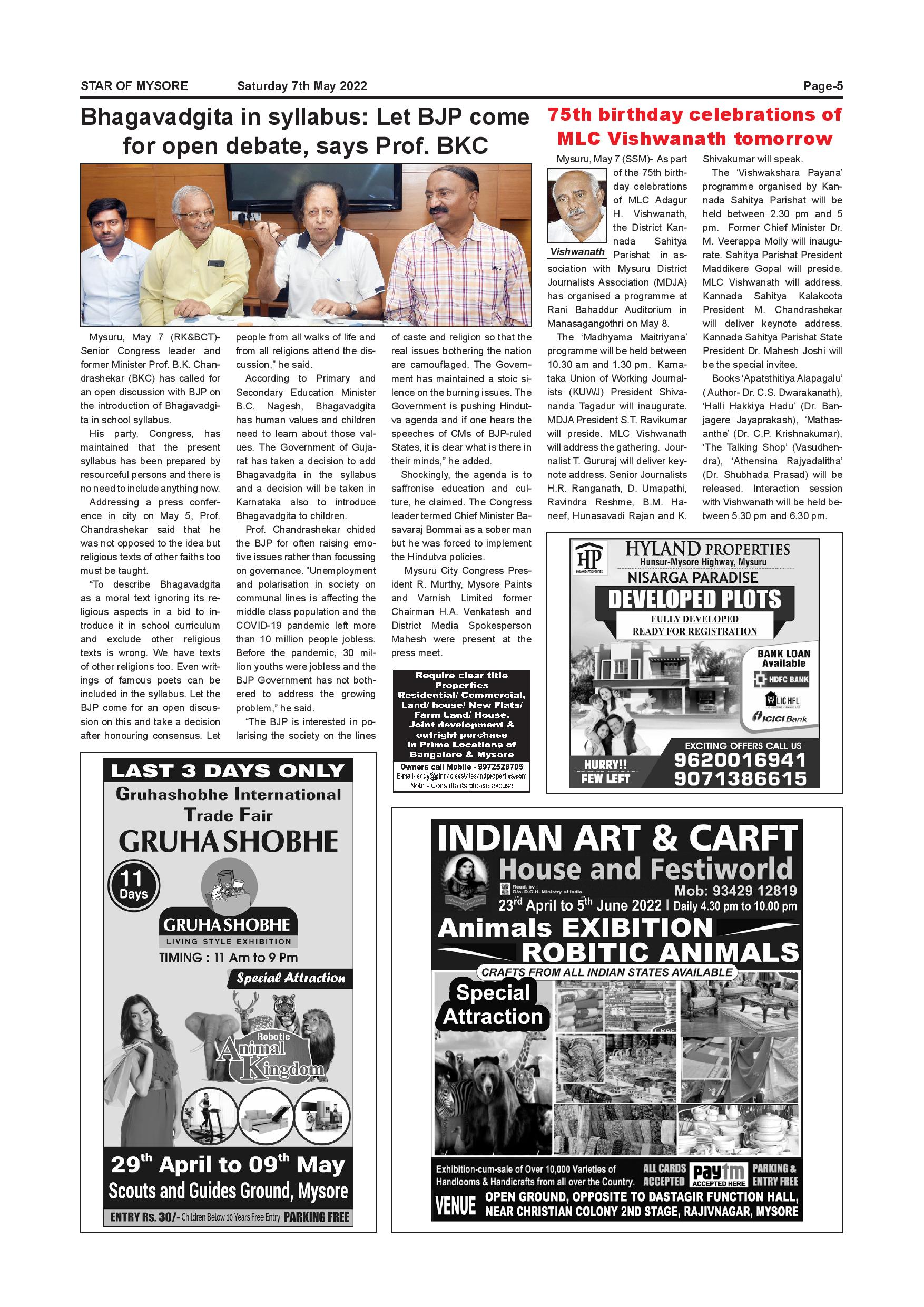 Star of Mysore Page: 5 May 07, 2022 << First << 5 >> Last >> Page 1Page 2Page 3Page 4Page 5Page 6Page 7Page 8Page 9Page 10Page 11Page 12 × Star of Mysore << First << 5 >> Last >> Page-001Page-002Page-003Page-004Page-005Page-006Page-007Page-008Page-009Page-010Page-011Page-012 Page-005