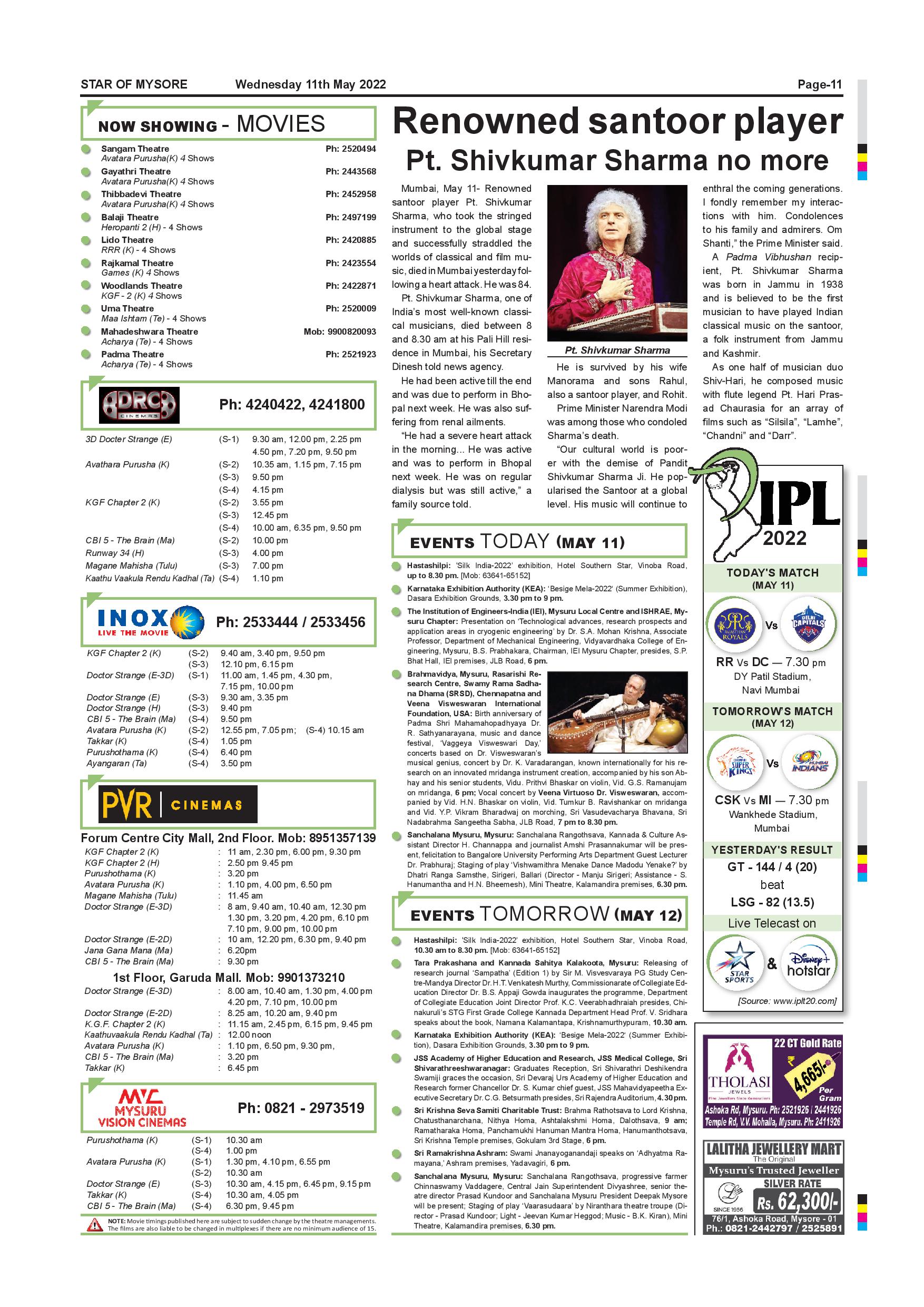 Star of Mysore Page: 11 May 11, 2022 << First << 11 >> Last >> Page 1Page 2Page 3Page 4Page 5Page 6Page 7Page 8Page 9Page 10Page 11Page 12 × Star of Mysore << First << 11 >> Last >> Page-001Page-002Page-003Page-004Page-005Page-006Page-007Page-008Page-009Page-010Page-011Page-012 Page-011