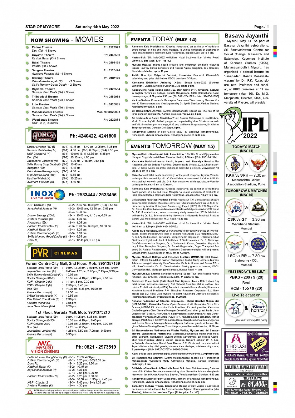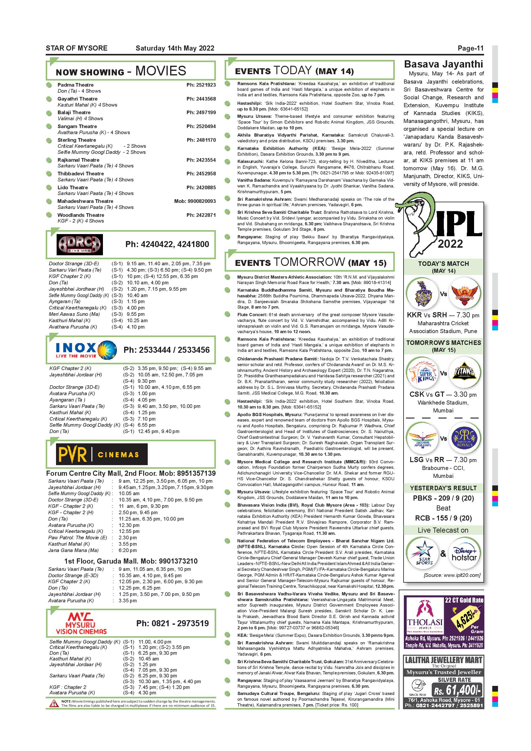 Star of Mysore Page: 11 May 14, 2022 << First << 11 >> Last >> Page 1Page 2Page 3Page 4Page 5Page 6Page 7Page 8Page 9Page 10Page 11Page 12 × Star of Mysore << First << 11 >> Last >> Page-001Page-002Page-003Page-004Page-005Page-006Page-007Page-008Page-009Page-010Page-011Page-012 Page-011