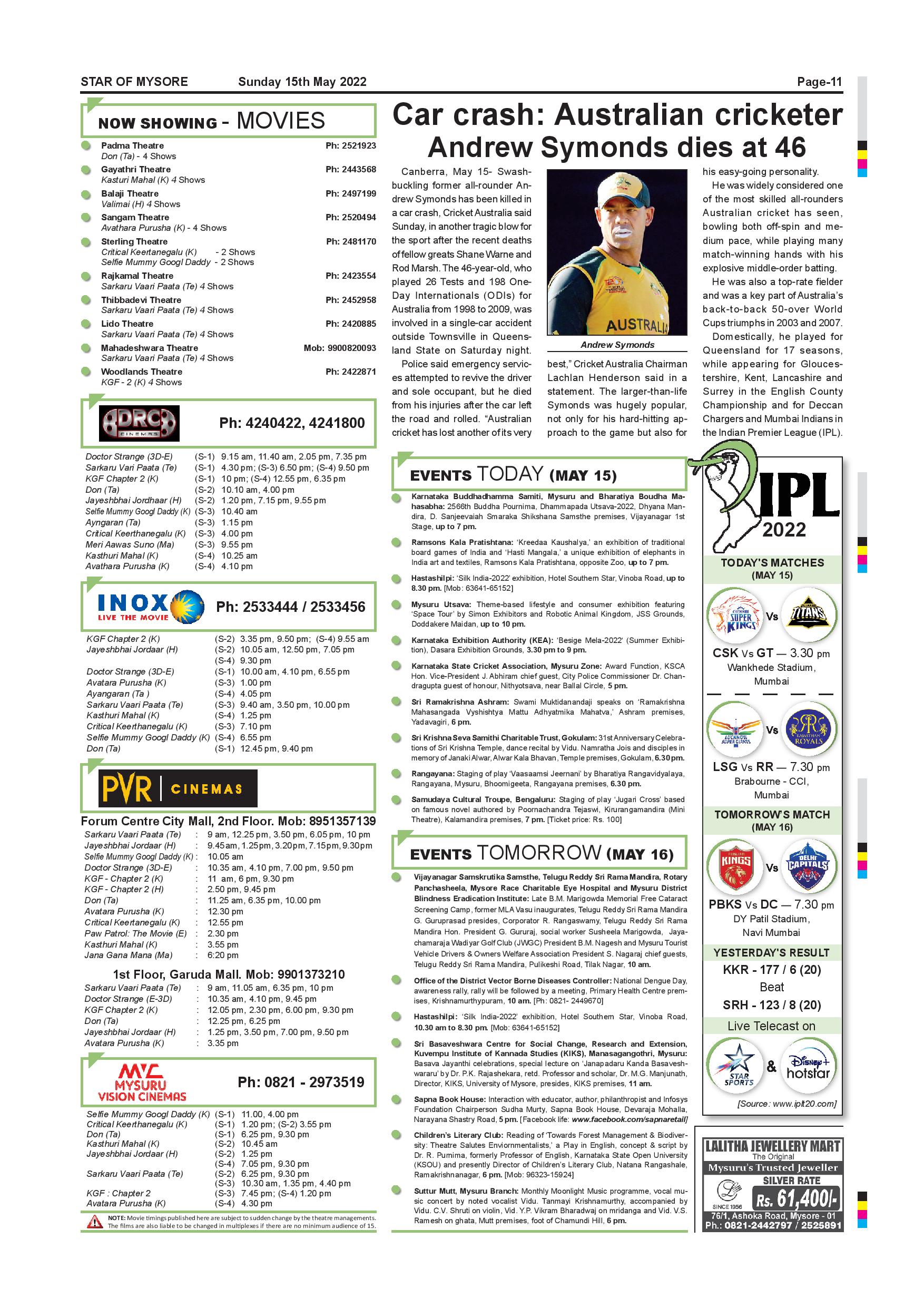 Star of Mysore Page: 11 May 15, 2022 << First << 11 >> Last >> Page 1Page 2Page 3Page 4Page 5Page 6Page 7Page 8Page 9Page 10Page 11Page 12 × Star of Mysore << First << 11 >> Last >> Page-001Page-002Page-003Page-004Page-005Page-006Page-007Page-008Page-009Page-010Page-011Page-012 Page-011