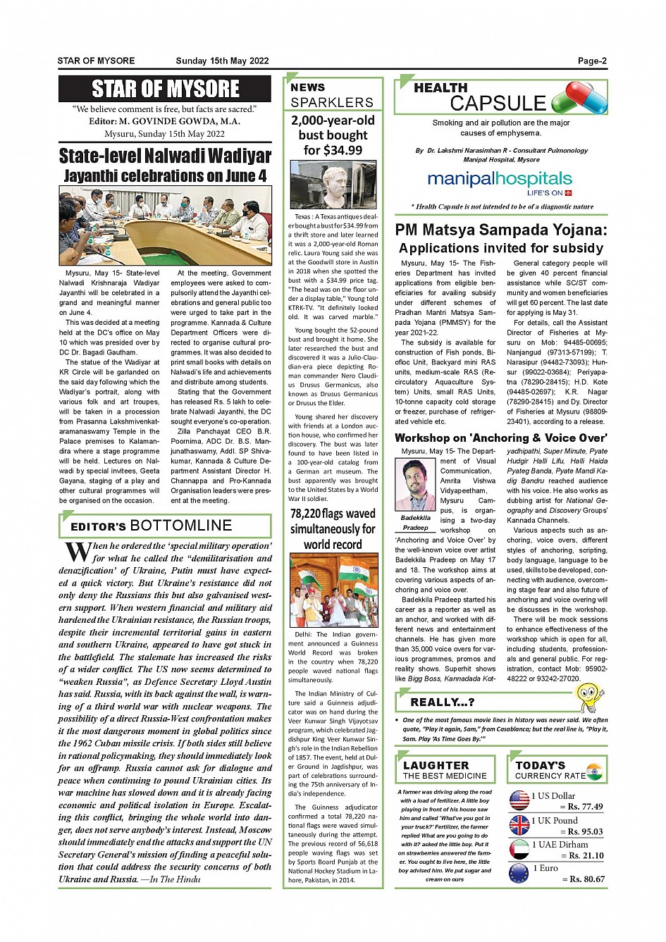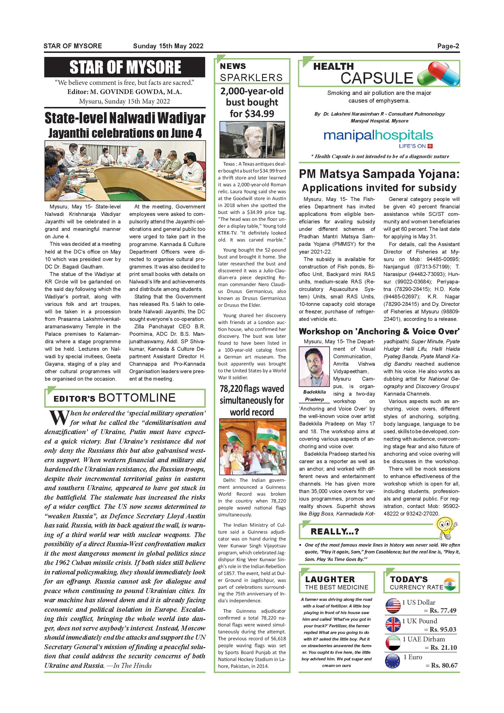 Star of Mysore Page: 2 May 15, 2022 << First << 2 >> Last >> Page 1Page 2Page 3Page 4Page 5Page 6Page 7Page 8Page 9Page 10Page 11Page 12 × Star of Mysore << First << 2 >> Last >> Page-001Page-002Page-003Page-004Page-005Page-006Page-007Page-008Page-009Page-010Page-011Page-012 Page-002