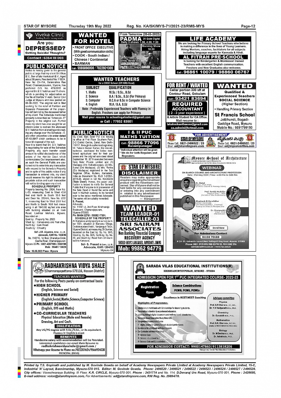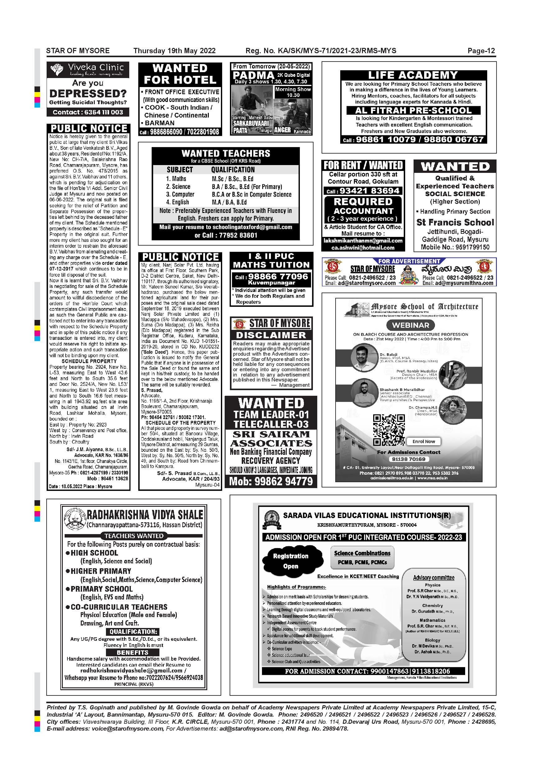 Star of Mysore Page: 12 May 19, 2022 << First << 12 >> Last >> Page 1Page 2Page 3Page 4Page 5Page 6Page 7Page 8Page 9Page 10Page 11Page 12 × Star of Mysore << First << 12 >> Last >> Page-001Page-002Page-003Page-004Page-005Page-006Page-007Page-008Page-009Page-010Page-011Page-012 Page-012