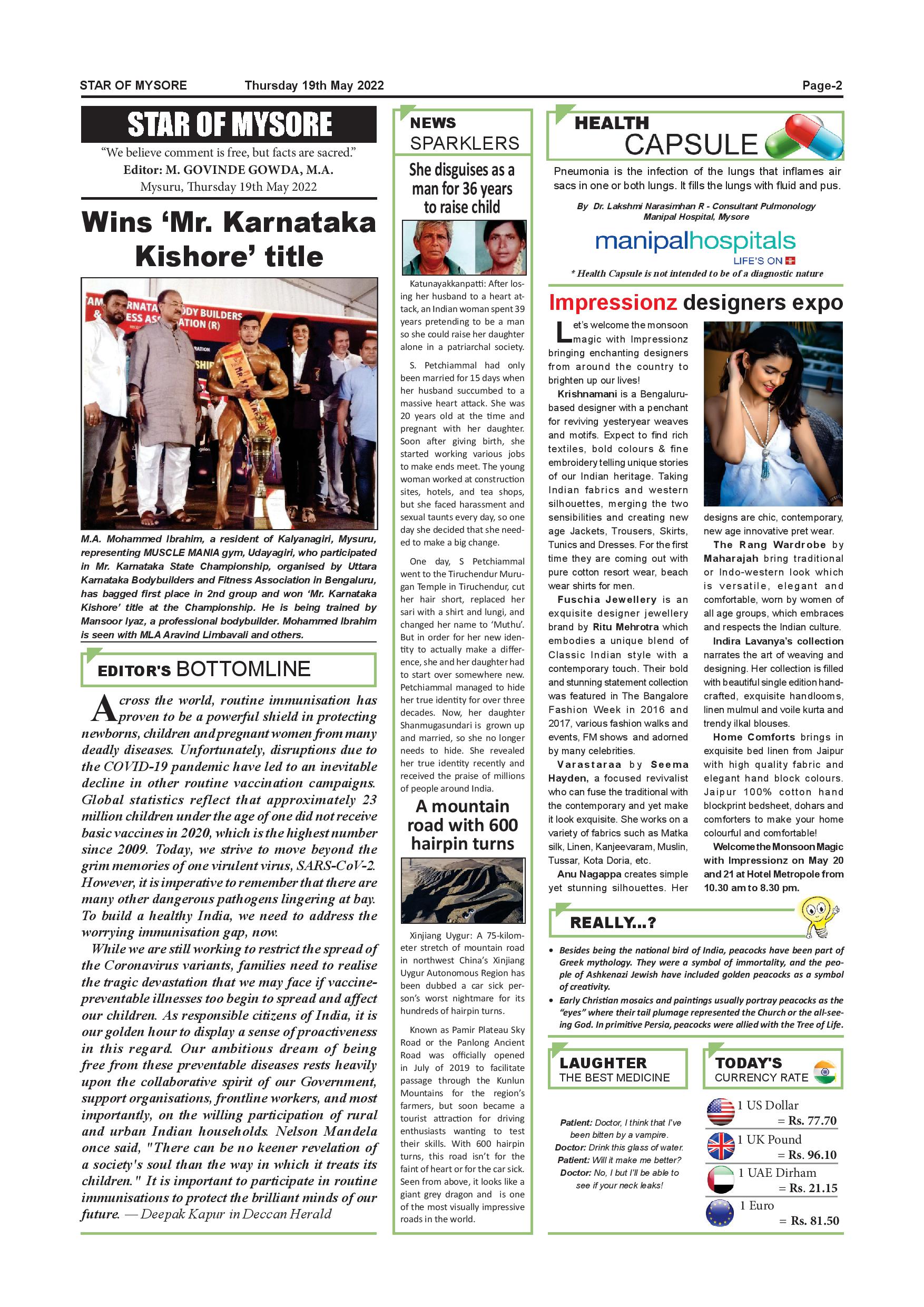 Star of Mysore Page: 2 May 19, 2022 << First << 2 >> Last >> Page 1Page 2Page 3Page 4Page 5Page 6Page 7Page 8Page 9Page 10Page 11Page 12 × Star of Mysore << First << 2 >> Last >> Page-001Page-002Page-003Page-004Page-005Page-006Page-007Page-008Page-009Page-010Page-011Page-012 Page-002