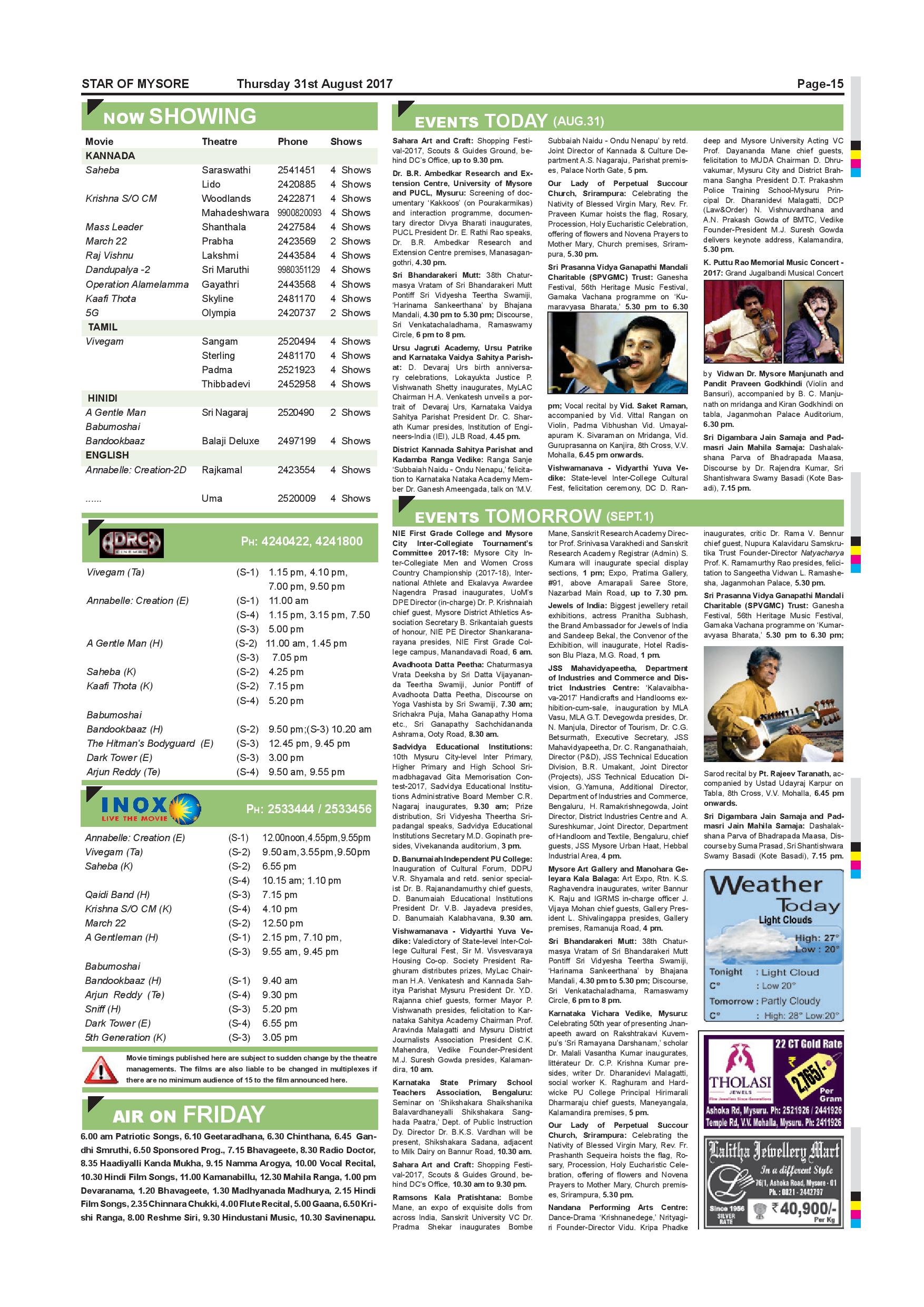 Star of Mysore Page: 15 August 31, 2017 << First << 15 >> Last >> Page 1Page 2Page 3Page 4Page 5Page 6Page 7Page 8Page 9Page 10Page 11Page 12Page 13Page 14Page 15Page 16 × Star of Mysore << First << 15 >> Last >> page-001page-002page-003page-004page-005page-006page-007page-008page-009page-010page-011page-012page-013page-014page-015page-016 page-015